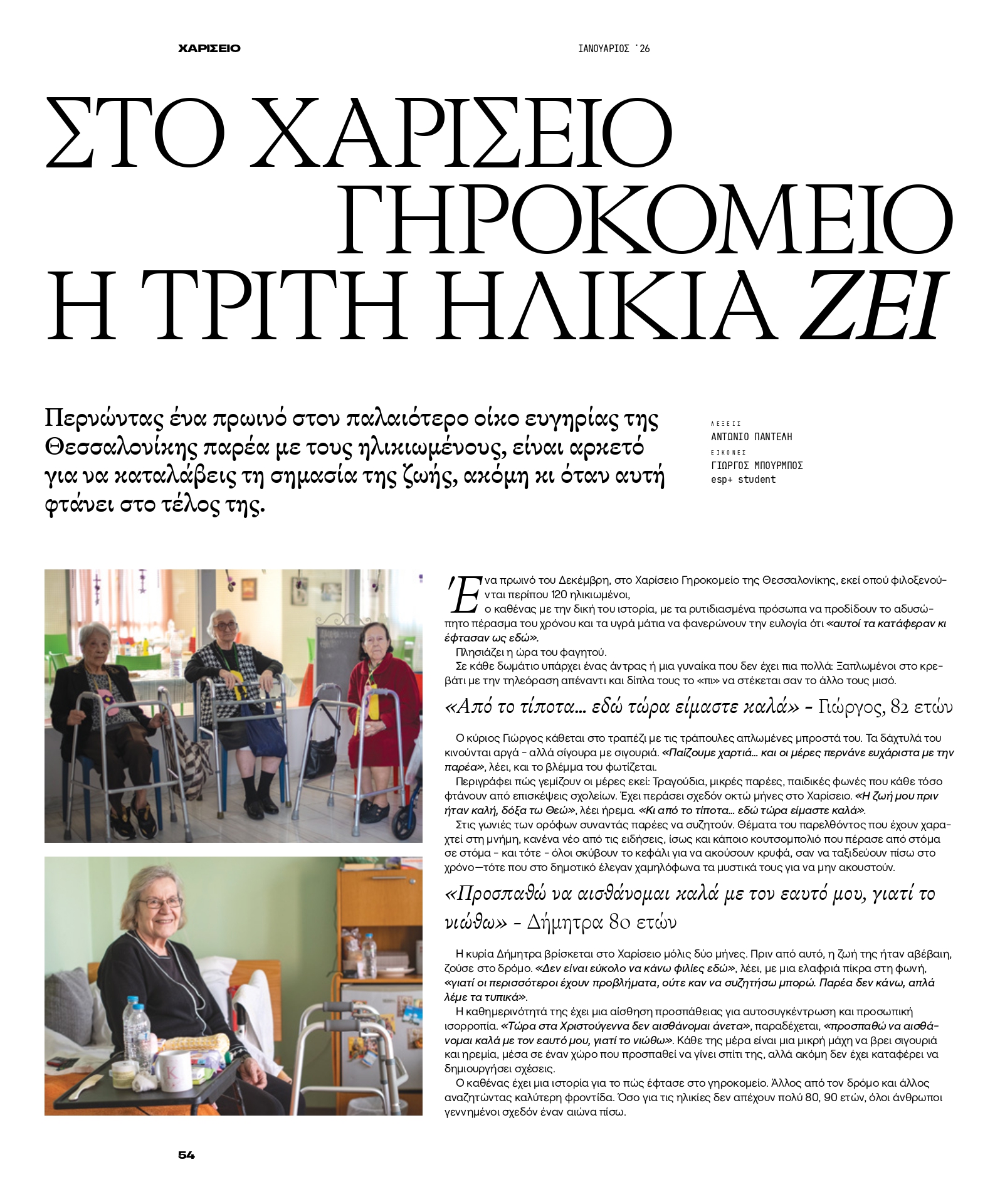 Περνώντας ένα πρωινό στον παλαιότερο οίκο ευγηρίας της Θεσσαλονίκης παρέα με τους ηλικιωμένους, είναι αρκετό για να καταλάβεις τη σημασία της ζωής, ακόμη κι όταν αυτή φτάνει στο τέλος της.