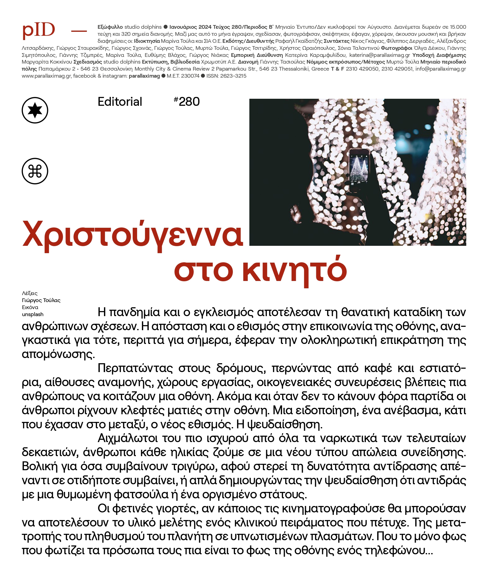 Η parallaxi Ιανουαρίου κυκλοφορεί παντού στην πόλη με ένα τεύχος που σε «κρατάει» μέχρι την τελευταία του σελίδα.