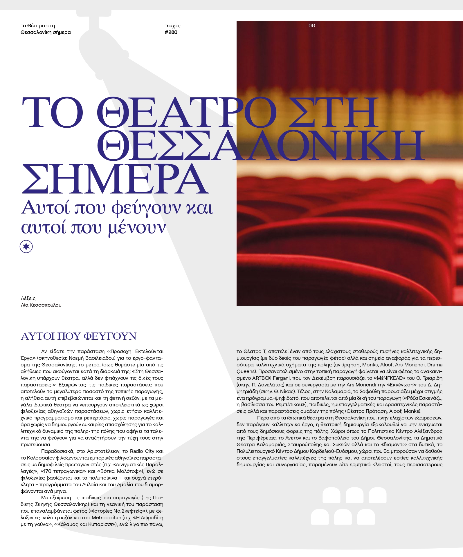 Η Λία Κεσσοπούλου γράφει για αυτούς που φεύγουν και αυτούς που μένουν και επιμένουν στα θεατρικά σανίδια της πόλης.