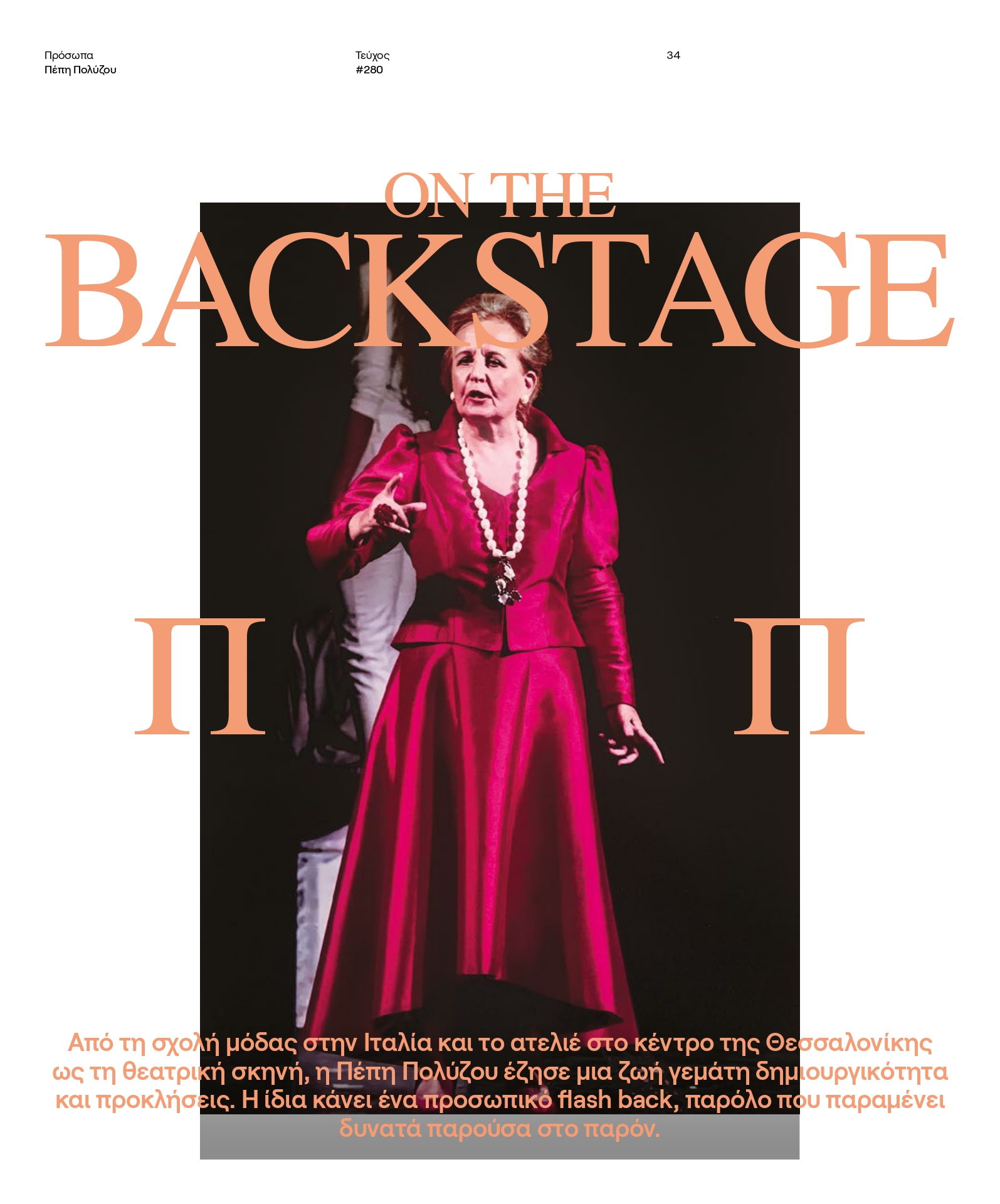 Από τη σχολή μόδας στην Ιταλία και το ατελιέ στο κέντρο της Θεσσαλονίκης ως τη θεατρική σκηνή, η Πέπη Πολύζου ανοίγει την καρδιά της στην parallaxi.