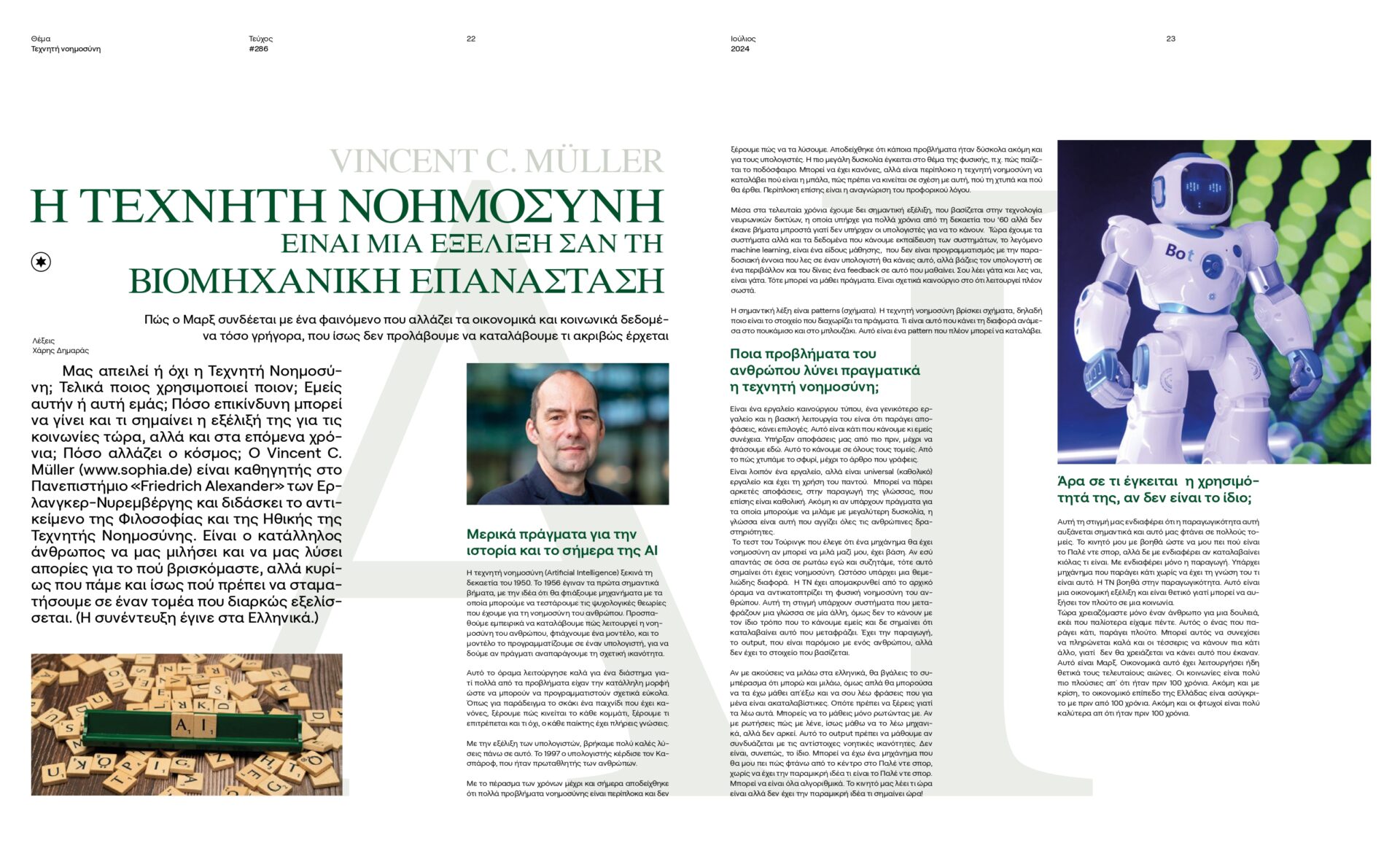 Vincente C. Müller: Η τεχνητή νοημοσύνη είναι μια εξέλιξη σαν τη βιομηχανική επανάσταση