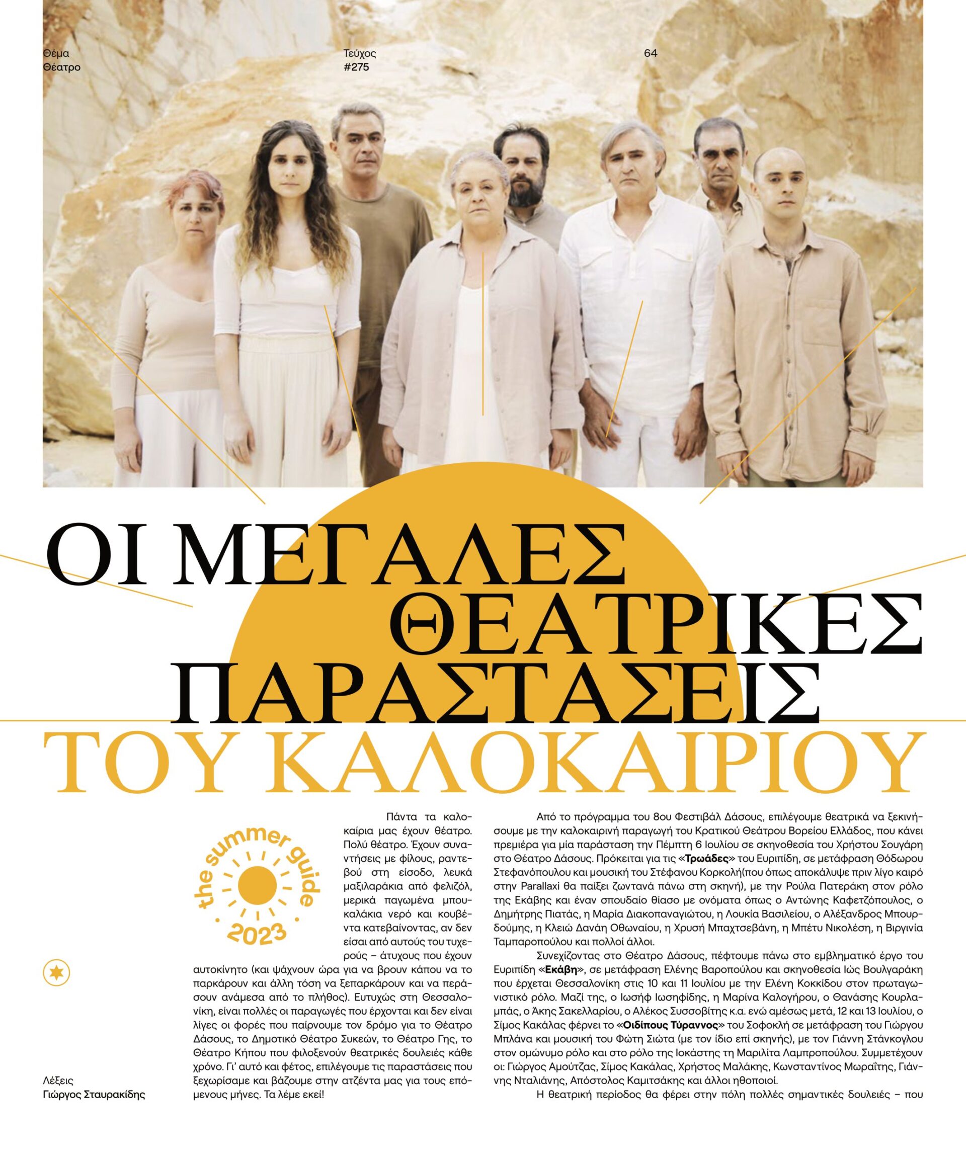 Πάντα τα καλοκαίρια μας έχουν θέατρο. Πολύ θέατρο. Έχουν συναντήσεις με φίλους, ραντεβού στη είσοδο, λευκά μαξιλαράκια από φελιζόλ, μερικά παγωμένα μπουκαλάκια νερό και κουβέντα κατεβαίνοντας. Έτσι θα είναι και το φετινό καλοκαίρι.
