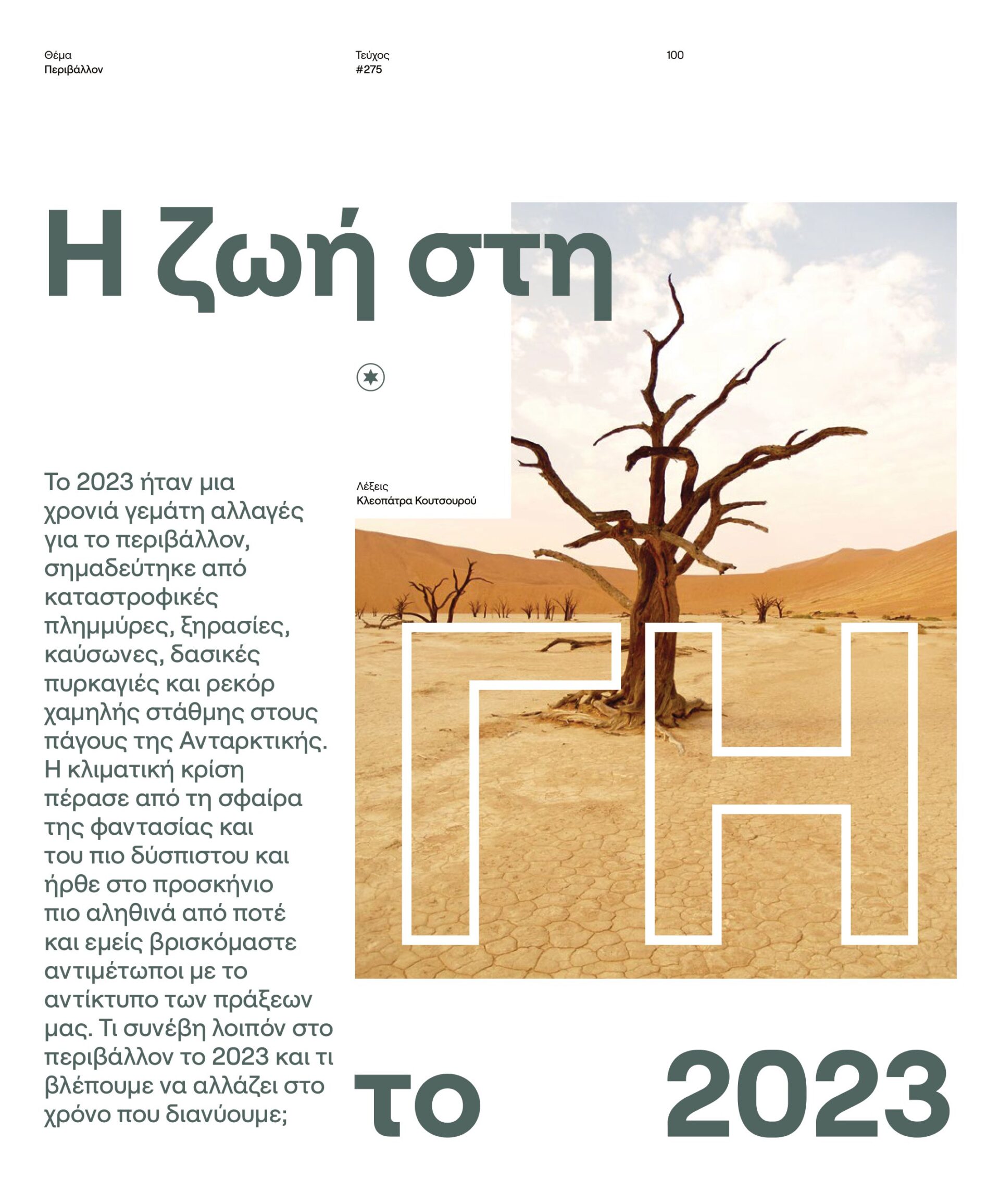Η κλιματική κρίση πέρασε από τη σφαίρα της φαντασίας και του πιο δύσπιστου και ήρθε στο προσκήνιο πιο αληθινά από ποτέ και εμείς βρισκόμαστε αντιμέτωποι με το αντίκτυπο των πράξεων μας. Τι συνέβη λοιπόν στο περιβάλλον και τι βλέπουμε να αλλάζει στο χρόνο που διανύουμε;