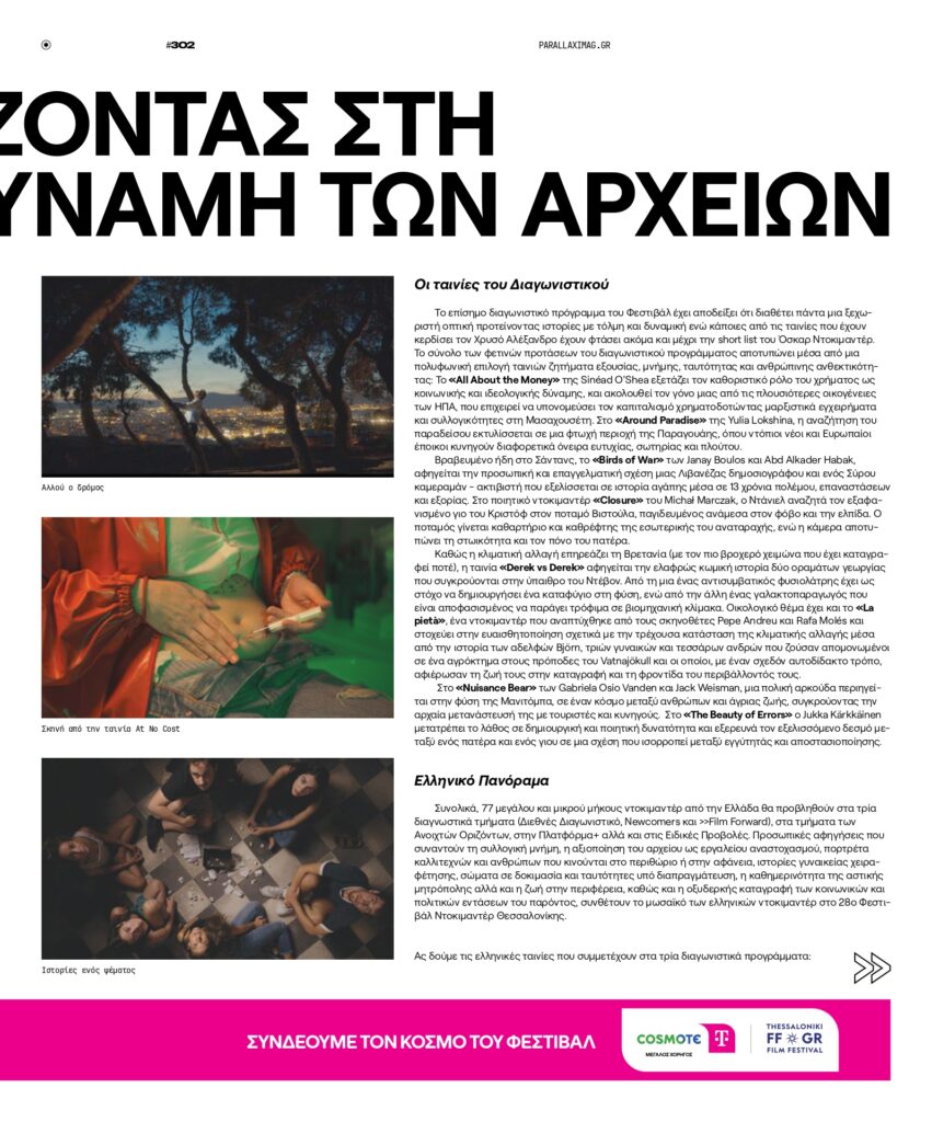 Η parallaxi Μαρτίου κυκλοφορεί στην πόλη με ένα τεύχος αφιέρωμα στο χτες, το σήμερα και το αύριο της Καλαμαριάς, αλλά και τον απόλυτο οδηγό για το φετινό Φεστιβάλ Ντοκιμαντέρ Θεσσαλονίκης.