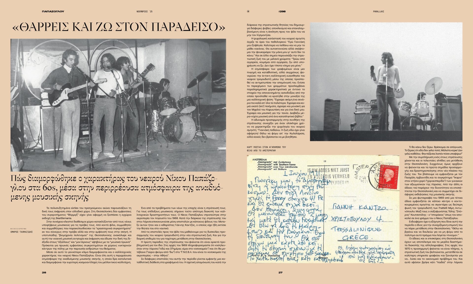 «Θαρρείς και ζω στον παράδεισο». Πώς διαμορφώθηκε ο χαρακτήρας του νεαρού Νίκου Παπάζογλου στα 60s, μέσα στην περιρρέουσα ατμόσφαιρα της αναδυόμενης μουσικής σκηνής.