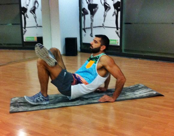 Καθόμαστε στο πάτωμα και τοποθετούμε τα πόδια μας σταυροπόδι (όπως στην εικόνα) με τις παλάμες ανοιχτές και σταθερές λίγο πίσω από τη λεκάνη μας. Κατόπιν στηριζόμενοι στις παλάμες και στο ένα πέλμα ανασηκώνουμε τον κορμό μας και κάνουμε μικρές κινήσεις πάνω κάτω χωρίς να ακουμπάμε το δάπεδο. Αλλάζουμε πόδι και εκτελούμε το ίδιο.
