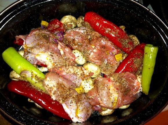 Ψήνουμε με κλειστό καπάκι στους 180 για μια ώρα.