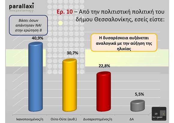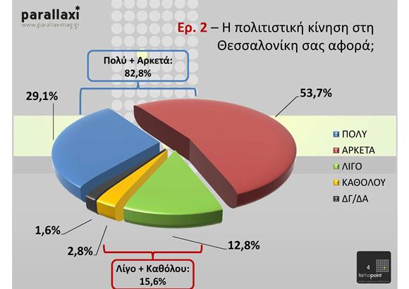 Δίνεται έτσι για πρώτη φορά η δυνατότητα σχηματισμού ενός πολιτιστικού προφίλ του μέσου Θεσσαλονικιού θεατή, μέσω των προτιμήσεων και των απόψεών του, καθώς και μια ευρεία καταγραφή των προσδοκιών γύρω από ζητήματα τέχνης και κουλτούρας στην πόλη σήμερα∙ τα δημοφιλέστερα είδη πολιτιστικής έκφρασης, την αναγνωρισιμότητα των προσωπικοτήτων του πολιτισμού στην πόλη, τη συχνότητα επισκέψεων σε χώρους πολιτισμού, τους τρόπους ενημέρωσης γύρω από ζητήματα πολιτισμού, την κριτική για την τοπική και την εθνική πολιτιστική πολιτική, την αξιολόγηση των πολιτιστικών φορέων της πόλης.