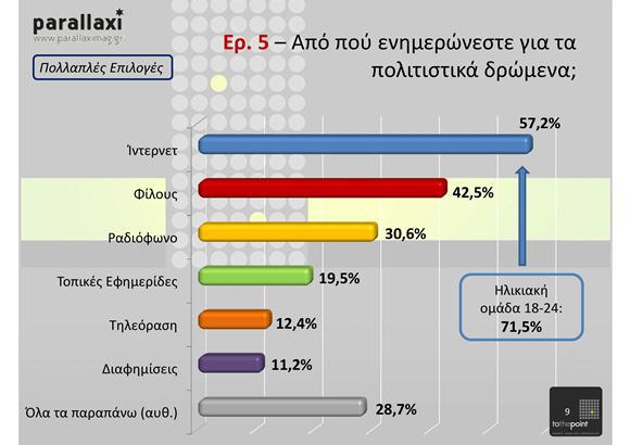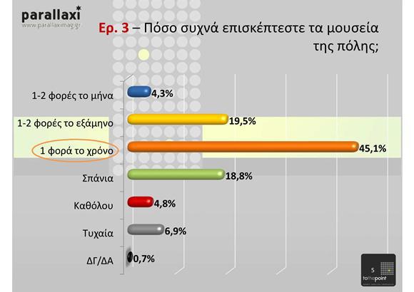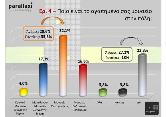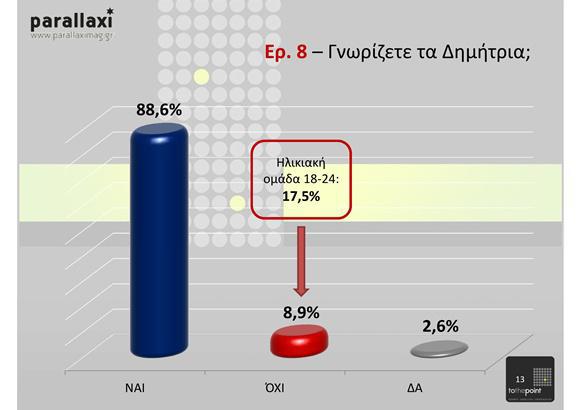 Από τα πιο ενδιαφέροντα συμπεράσματα της έρευνας είναι η στροφή σε μορφές τέχνης που κυριαρχεί η εικόνα (κινηματογράφος, μουσείο φωτογραφίας κλπ), η σχεδόν καθολική ενημέρωση για τα πολιτιστικά ζητήματα από το ίντερνετ και η απαξίωση των παραδοσιακών μέσων, η αποδοχή και η αναγνωρισιμότητα των Δημητρίων.