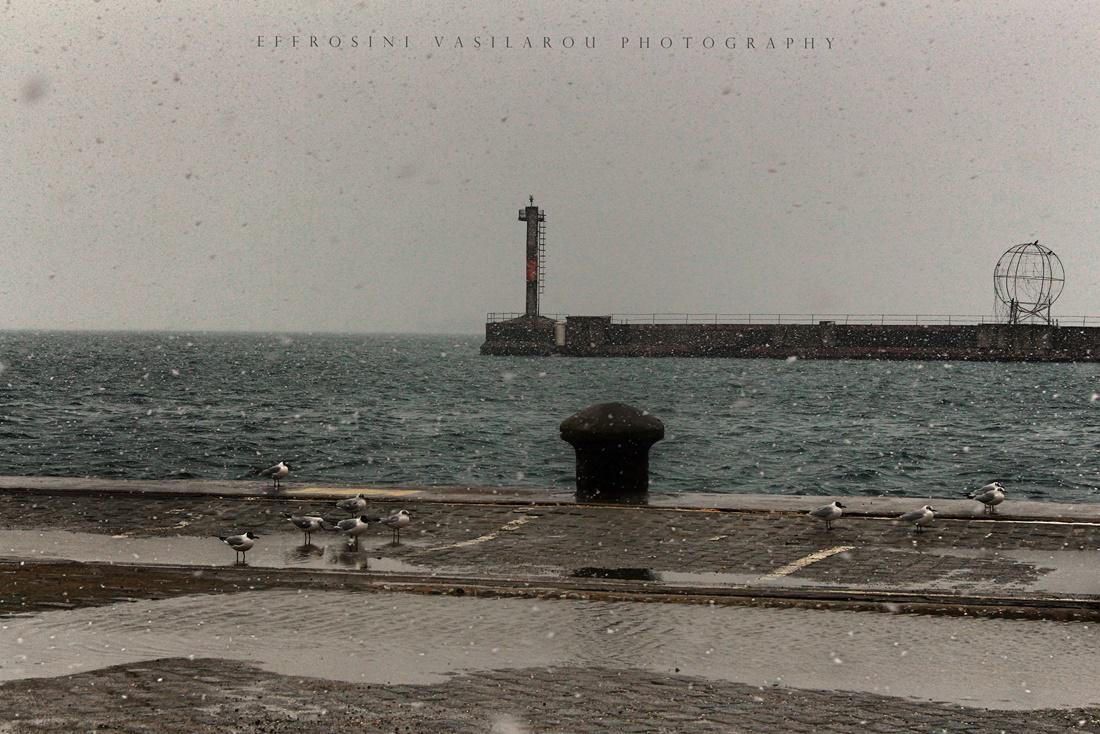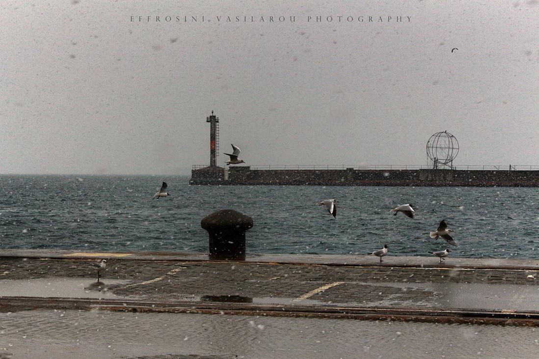 Οι νιφάδες που πέφτουν από τον ουρανό, όσο κι αν κρατούν σε διάρκεια, είναι μια συμπυκνωμένη μαγεία που ακουμπά ευλαβικά στη θέα που έχεις μάθει να αγαπάς. Στη θάλασσα που κοιτάζεις χειμώνα – καλοκαίρι, στα κύματα που ψάχνεις να βρεις τις απαντήσεις σου.