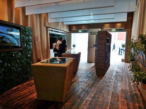 Έως εδώ όλα καλά, είναι μία επιλογή που έχει πιθανόν ένα σκεπτικό οικονομίας αν δεν πρόκειται απλά για αδιαφορία και ολιγωρία. Το πρόβλημα είναι ότι το ελληνικό περίπτερο δεν έχει σχεδόν τίποτα να πει. Οι λιγοστοί επισκέπτες βγαίνουν με πολλά ερωτηματικά. Πανιά-οθόνες κρέμονται από την οροφή χωρίς να φαίνεται αυτό που προβάλλεται, κάποιες κατασκευές με συρματοκιβώτια στο κέντρο και γλάστρες με αρωματικά, κάποιες άδειες, κάποιες ήδη μαραμένες, 20 μέρες από την έναρξη.