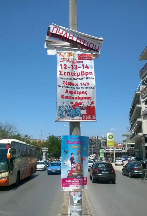 Μέχρι την επόμενη νεροποντή συνεχίζουν να διαφημίζονται το φεστιβάλ 2013 της ΚΝΕ στο στρατόπεδο Παύλου Μελά, ο Κώστας Μαρτάκης στη Χριστουγεννιάτικη γιορτή Αγγέλων στα Λουτρά Λαγκαδά,ο Γιώργος Καρατζαφέρης που μας καλεί σε αφύπνιση και οι εφήμεροι σταρ των μπουζουκομάγαζων.