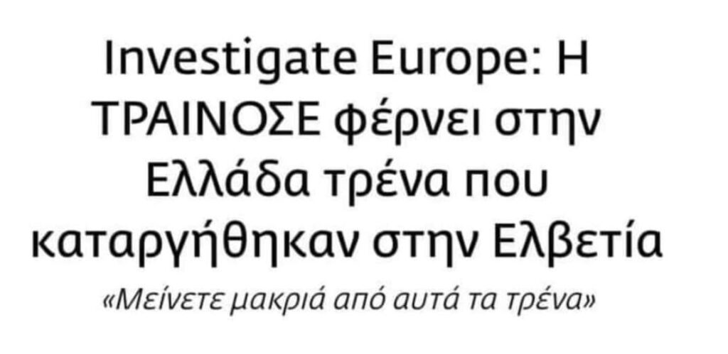 Και την ίδια ώρα να βγαίνουν οι ειδήσεις για τη σαπίλα, η μία μετά την άλλη, στα ψιλά. Λίγες μέρες μόνο πριν αποκαλύπτονταν: «Προβληματικές αμαξοστοιχίες, τις οποίες οι ελβετικοί σιδηρόδρομοι έστειλαν πριν χρόνια για «παλιοσίδερα», έχει αγοράσει η ΤΡΑΙΝΟΣΕ, για λογαριασμό των ελληνικών σιδηροδρόμων, παρουσιάζοντάς τες ως υπερσύγχρονες. Ωστόσο, οι ιταλικοί σιδηρόδρομοι, οι οποίοι έχουν αναλάβει τη διοίκηση της ιδιωτικοποιημένης ΤΡΑΙΝΟΣΕ εδώ και πέντε χρόνια, εμφανίζουν τα ίδια τρένα, ως τρένα σύγχρονης τεχνολογίας και τα στέλνουν στην Ελλάδα.