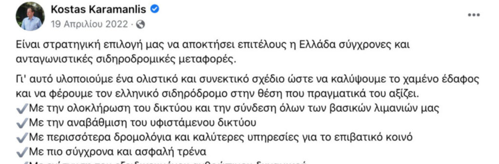 Σήμερα στις 12 το μεσημέρι ο Κυριάκος Μητσοτάκης είχε προγραμματίσει επικοινωνιακή προεκλογική φιέστα για το Κέντρο τηλεδιοίκησης – σηματοδότησης σιδηροδρομικού δικτύου βορείου Ελλάδος. Ακυρώθηκε.