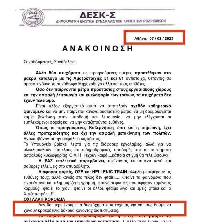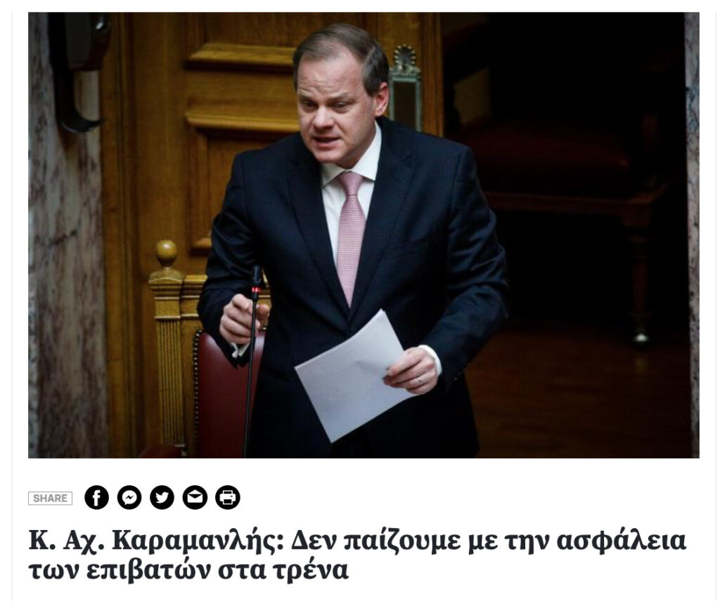 ΥΓ2. Από όλα όσα ακούστηκαν αυτές τις ώρες αυτό είναι το πιο συγκλονιστικό: «Είχαμε μείνει με καθυστέρηση και άκουσα με τον μηχανοδηγό να μιλάει με τον υπεύθυνο εισιτηρίων και να λέει, “πάμε και όπου βγει”. Σίγουρα είσαι προϊδεασμένος ότι κάτι δεν θα πάει καλά. Αυτό ακριβώς άκουσα μέσα από τους ασυρμάτους. “Πάμε και όπου βγει”. Τίποτε άλλο», ανέφερε χαρακτηριστικά ο επιβάτης της αμαξοστοιχίας. Η ζωή μιας χώρας αφημένη στην τύχη. Όπου βγει…