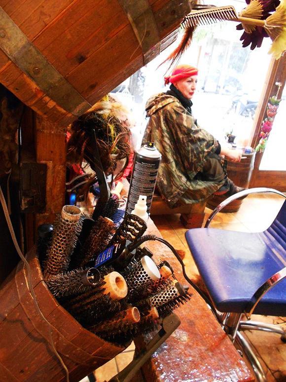 Φτάνοντας έξω από το κομμωτήριο της Ελπίδας, το «THRIX της Ελπίδας», δε γίνεται να μη σου τραβήξει την προσοχή η παράξενα διακοσμημένη πρόσοψη και το σκηνικό του εσωτερικού.