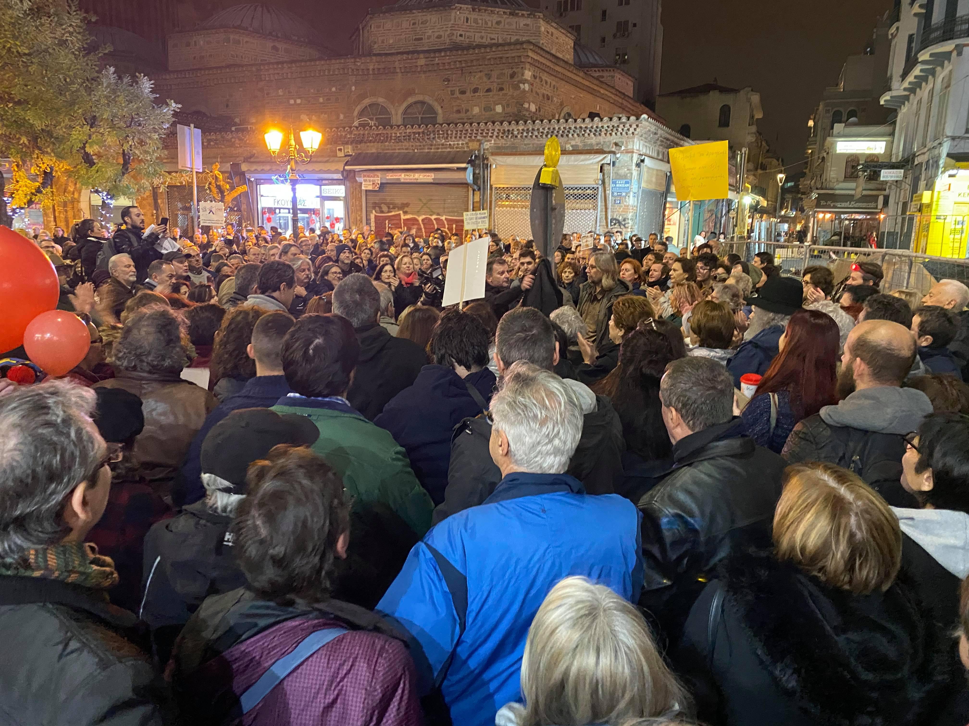 Όταν κοιτάς από ψηλά αυτή την εικόνα, με τους νέους και τους μεγαλύτερους, τους επώνυμους και τους ανώνυμους, το μέγα πλήθος με το μέγα πάθος, τότε νιώθεις περηφάνια για μια πόλη που άρχισε να ξυπνά από έναν λήθαργο μεγάλο, που δεν θα ανεχτεί να την κοροϊδέψουν, που θα υψώσει όχι μόνο τη φωνή της αλλά και το σώμα της αν χρειαστεί, πίσω από αυτές τις λαμαρίνες. Και αυτό θα πρέπει να το έχουν σε μια άκρη του μυαλού τους όλοι αυτοί που μας αποκαλούν κοροϊδευτικά ”επαγγελματίες ευαίσθητους”. Καλύτερα ευαίσθητοι εξάλλου, παρά εγκληματίες. Βενιζέλου και Εγνατία, η δική μας Πομπηϊα.