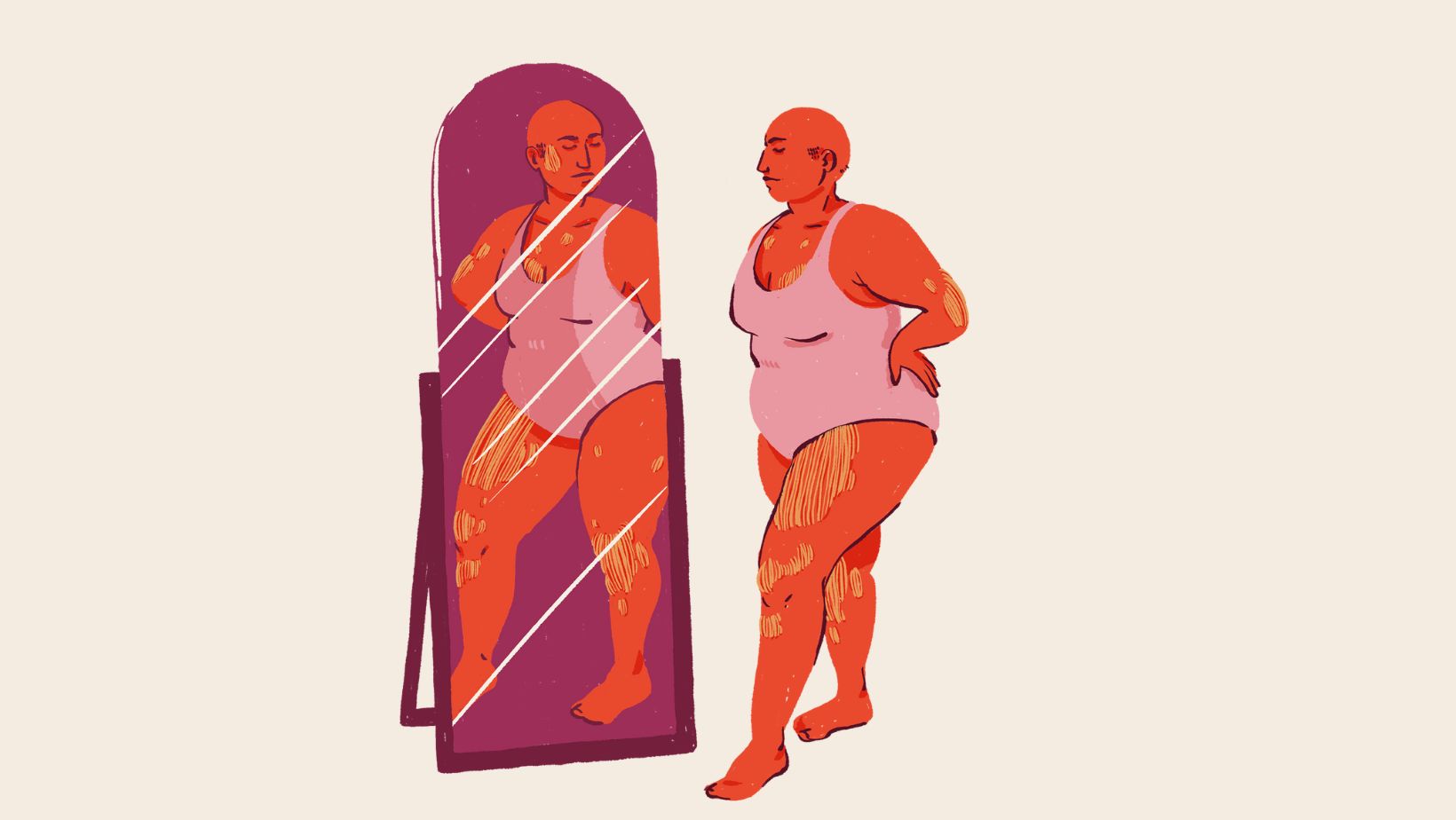 Σε όλο αυτό, η σωτηρία μου ήταν δύο χρόνια ψυχοθεραπείας και η θέληση να βοηθήσω τον εαυτό μου, να καταλάβω από πού προέρχεται αυτή η – εσωτερική και εξωτερική – δυσφορία με τον εαυτό μου. Έπρεπε να εκπαιδεύσω το μυαλό μου να σκέφτεται διαφορετικά, να κάνω “zoom out” από τον καθρέφτη. Ακόμα υπάρχουν όλες αυτές οι ατέλειες που έβλεπα πάνω μου, αλλά πλέον δεν με τρομάζουν, τις έχω κάνει δικές μου. Οι καθρέφτες σταμάτησαν να με κομπλάρουν, η γυμναστική άρχισε να γίνεται ένας υγιής τρόπος ζωής, εγώ και το φαγητό αρχίσαμε να ξανά συναντιόμαστε πάνω από μία φορά την ημέρα και τελικά κατάφερα να με αποδεχτώ και να με αγαπήσω για αυτό που πραγματικά είμαι.