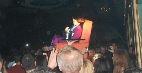O King Τόνι “έσκασε” λίγο μετά πάνω σε θρόνο φυσικά, που πέρασε ανάμεσα στο πλήθος υποβασταζόμενος από τέσσερις και κατέβηκε στη σκηνή κύριος και κατά τα φαινόμενα έτοιμος για όλα. Τα σκετσάκια που ακολούθησαν ήταν ολοφάνερα αυτοσχεδιαστικά, με καλές και κακές στιγμές, αλλά ποιος νοιάστηκε. Ο Τόνι δεν κάνει πρόγραμμα στην Μπαρμπαρέλα, κάνει πάρτι. Πάρτι από αυτά που εμείς οι παλιότεροι ζήσαμε αμέτρητα. Τότε που πάρτι σήμαινε αποκλειστικά χορός και οι μόνες στιγμές ξεκούρασης ήταν το πολυαναμενόμενο μπλουζ. Ο Τόνις και οι playmates έπαιξαν και μπλουζ (με ολοφάνερα σατιρική διάθεση φυσικά) και έκαναν ένα σόου που δεν προλάβε να κάνει κοιλιά (παρόλο που κινδύνεψε μερικές φορές).