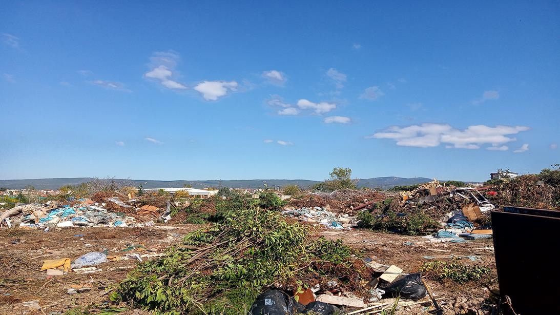 Μπάζα και ξύλα όλων των ειδών και προελεύσεων, σκουριασμένα κοντέινερ, σπασμένα κλαδιά και κομμένοι κορμοί δένδρων, συντρίμμια από είδη υγιεινής, κομματιασμένα πλαίσια από παράθυρα και πόρτες, ελαστικά και πλαστικά κάθε είδους και διάφορα άλλα αδρανή υλικά, φιλοξενεί η ανοιχτή παράνομη χωματερή που βρίσκεται δίπλα στο γήπεδο του Εθνικού Πυλαίας και σε απόσταση αναπνοής από τον Ξενώνα Καρκινοπαθών» του Θεαγένειου Αντικαρκινικού Νοσοκομείου Θεσσαλονίκης.