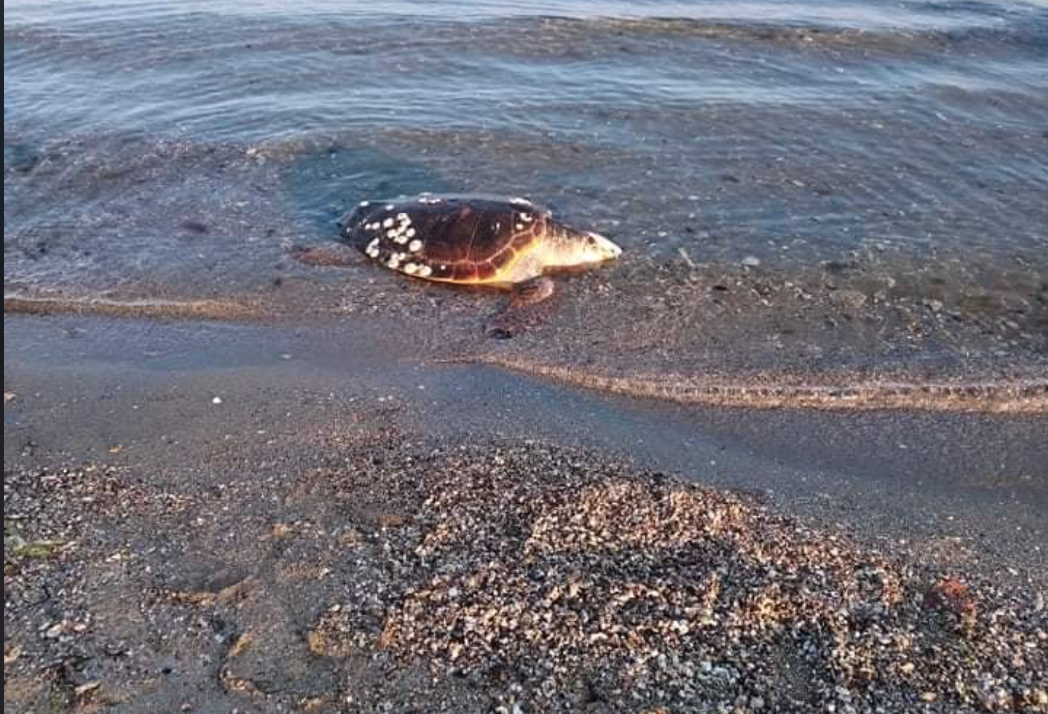 ΕΙΚΟΝΑ: Θαλάσσια χελώνα βγήκε στην αμμουδιά της Καλαμαριάς