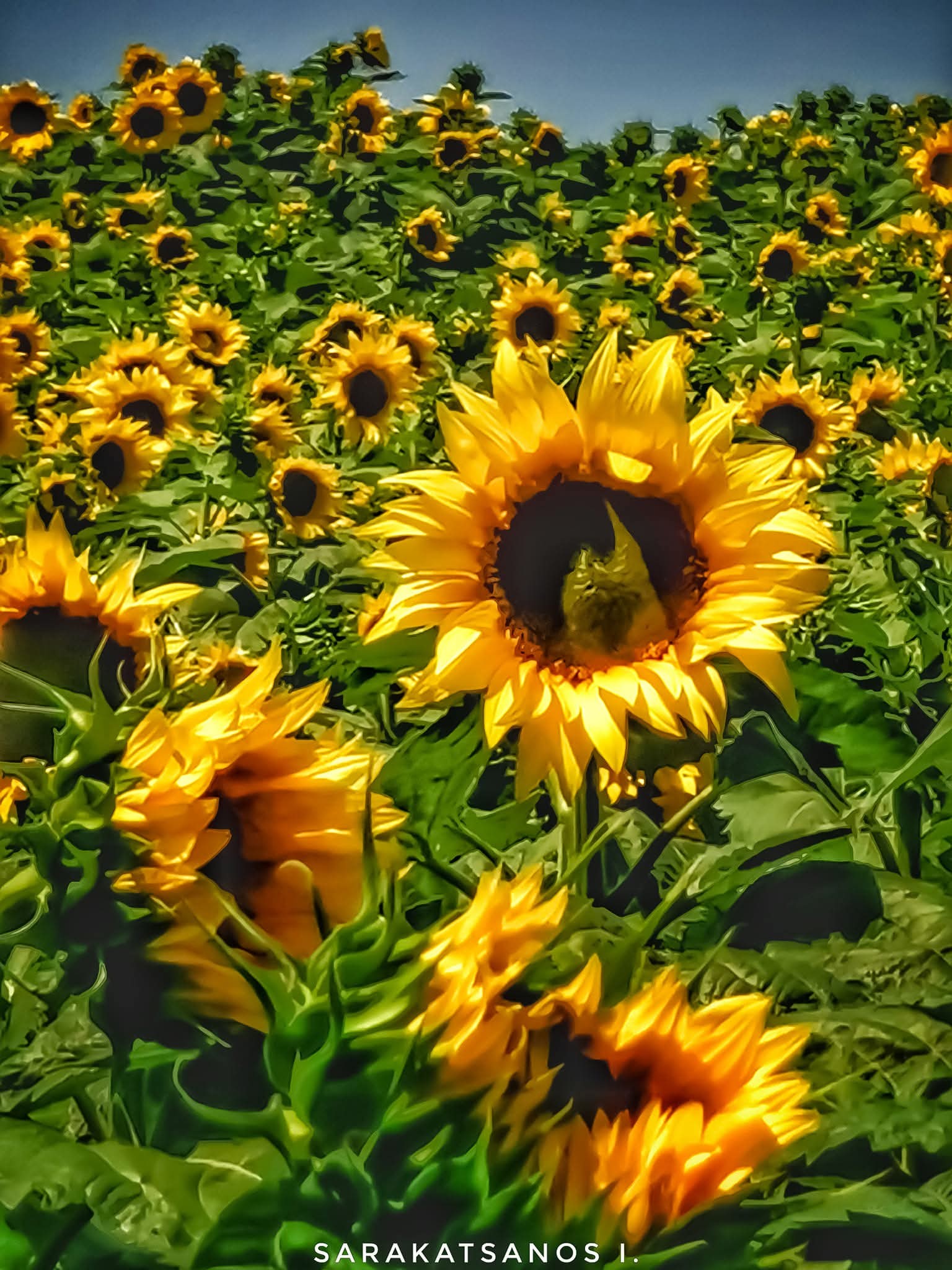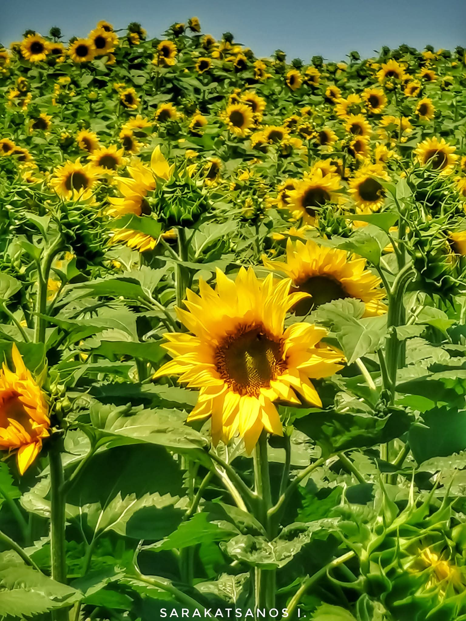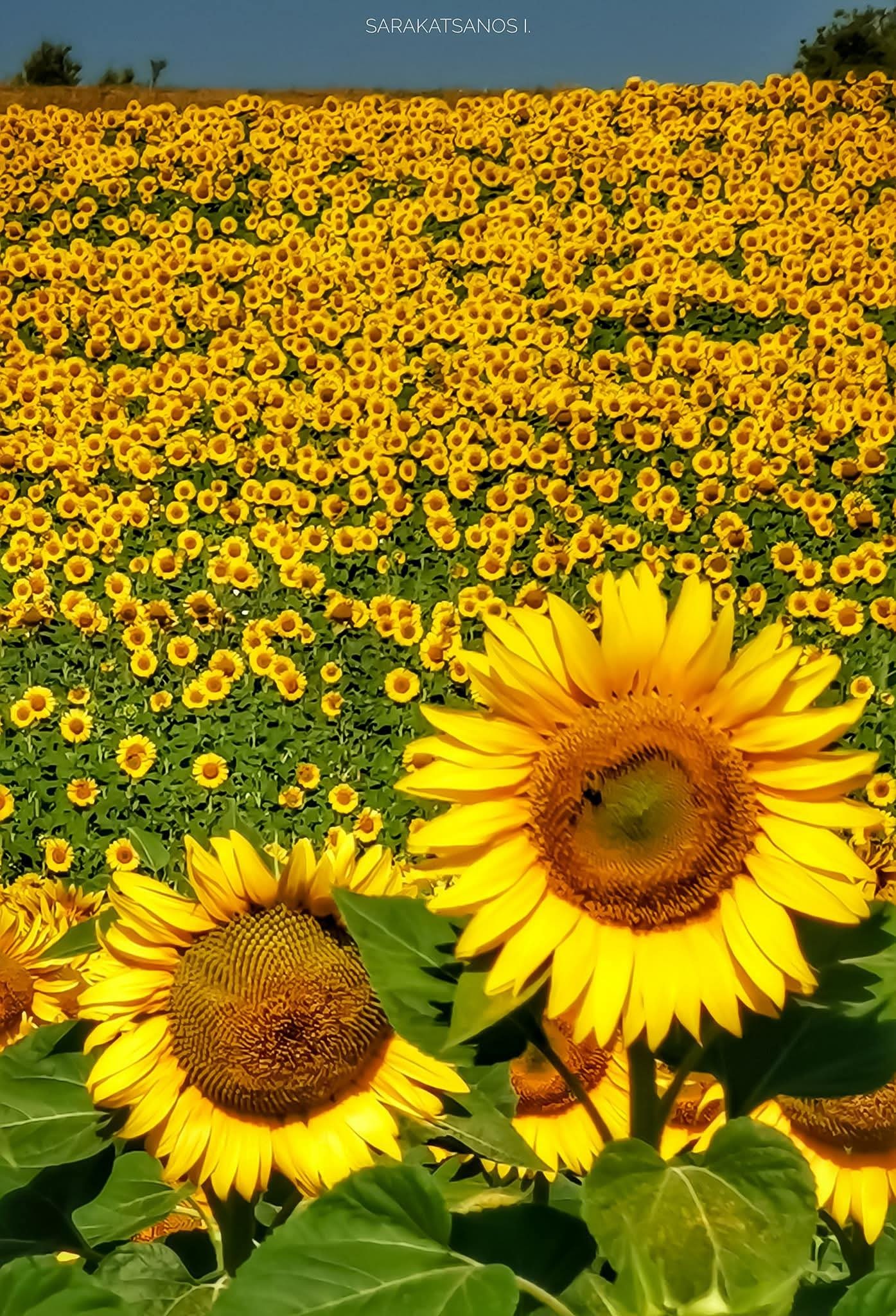 Μαγικές είναι οι εικόνες που έρχονται από τα χωράφια γεμάτα ηλίανθους στην Άφυτο της Χαλκιδικής.
