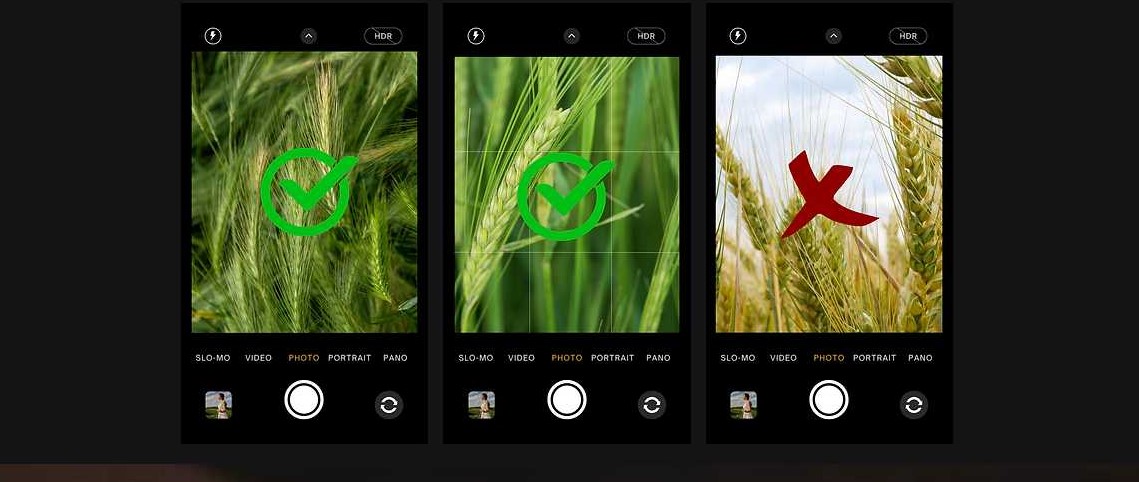 Βήμα 1 – Λήψη εικόνων: Πάρτε φωτογραφίες της καλλιέργειας χρησιμοποιώντας μια κάμερα ή ένα κινητό. Βεβαιωθείτε ότι οι εικόνες αντιπροσωπεύουν διάφορες περιοχές του χωραφιού σας και βρίσκονται στο στάδιο ανάπτυξης της άνθισης-ανάπτυξης φύλλων. Γενικά προτείνεται το πρόγραμμα να χρησιμοποιηθεί την περίοδο με την καλλιέργεια να έχει 85-95% ανάπτυξη φυλλώματος. Δίνονται δείγματα στο κάτω μέρος για το πως πρέπει να τραβηχτούν οι φωτογραφίες. Οι φωτογραφίες πρέπει να περιλαμβάνουν λεπτομέρειες της καλλιέργειας και όχι τον ορίζοντα. Πρέπει ξεκάθαρα οι φωτογραφίες να δείχνουν μέρη της καλλιέργειας, όσο μεγαλύτερα τόσο το καλύτερο.