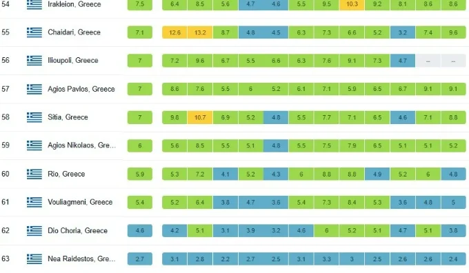 Τις πιο μολυσμένες και τις πιο καθαρές περιοχές της χώρας μας -όσον αφορά την ποιότηα του αέρα- δημοσιεύει έκθεση της ελβετικής εταιρείας IQAir.