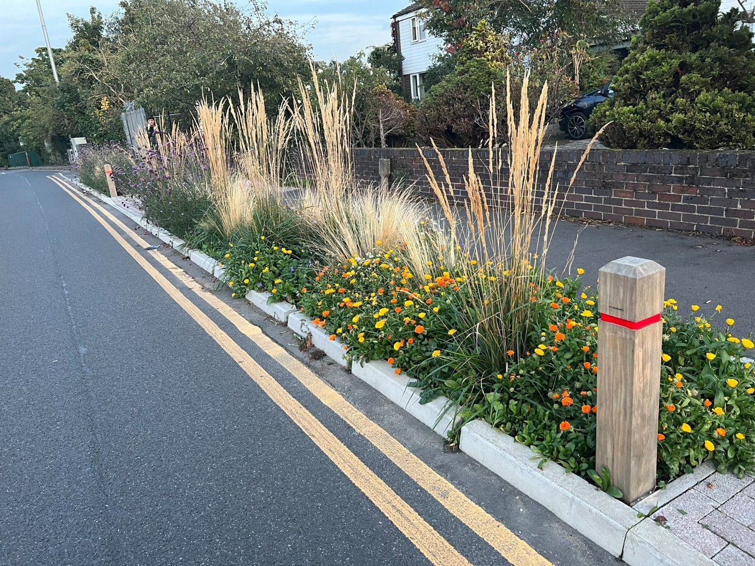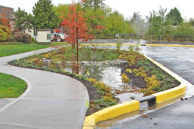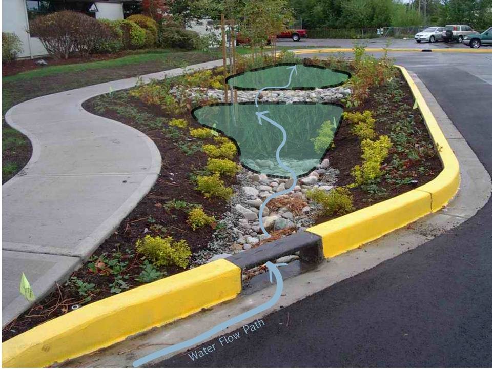 6. Σε πολλές αστικές περιοχές της χώρας μας, ο χώρος πρασίνου θεωρείται πολυτέλεια από αρχές, δυστυχώς και από μερίδα πολιτών.. Όπως είπαμε, στο έδαφος και στις στέγες, υπάρχει τόσο πολύ μπετόν, πλάκες, ασφαλτικά υλικά και μονώσεις. Το σκυρόδεμα, η άσφαλτος και η πλακόστρωση δεν είναι διαπερατά υλικά. Δεν απορροφούν το νερό της βροχής. Αυτό το υλικό δεν συγκρατεί, δεν εμποδίζει το νερό και το ανακατευθύνει στα συστήματα αποχέτευσης τα οποία με τη σειρά τους είναι λίγα σε σχέση με τον όγκο της βροχής, συχνά βουλώνουν και στη συνέχεια ξεχειλίζουν στους δρόμους και στα πεζοδρόμια. Η έννοια της “βιώσιμης αποστράγγισης” είναι σχετικά καινούργια αλλά και απολύτως λογική. Ως μέρος των περιβαλλοντικών πρωτοβουλιών που βρίσκονται σε εξέλιξη στην Ευρώπη και σε ολόκληρο τον κόσμο, οι τάσεις που ακολουθούνται είναι οι αδιαπέραστες επιφάνειες να αντικατασταθούν από διαπερατά υλικά, όπως το γρασίδι, πορώδη υλικά διάστρωσης, κυψελοειδή δάπεδα με χώμα και χλοοτάπητα και γενικώς εκτεταμένες φυτεμένες επιφάνειες. Αυτό θα επιτρέπει στο νερό της βροχής να διηθείται στο έδαφος. Κατασκευές π.χ, των λεγόμενων Rain Gardens, με ανοίγματα των κράσπεδων κατά σημεία, όπου οι κλίσεις του οδοστρώματος το επιτρέπει, κατευθύνει τα νερά της βροχής ώστε να διαχέονται μέσα στις πράσινες νησίδες και τα πάρκα…, σε κήπους, προκήπια και παρτέρια πρασίνου στην πόλη, όπου τα νερά θα σταθμεύουν προσωρινά ή θα απορροφούνται και θα ξαναγεμίζουν… Η διαδικασία, χρησιμεύει επίσης για τη διατήρηση της ζωής των φυτών.. με φυσικό πότισμα και την δημιουργία μικρών οικοσυστημάτων κοντά στον άνθρωπο της πόλης.
