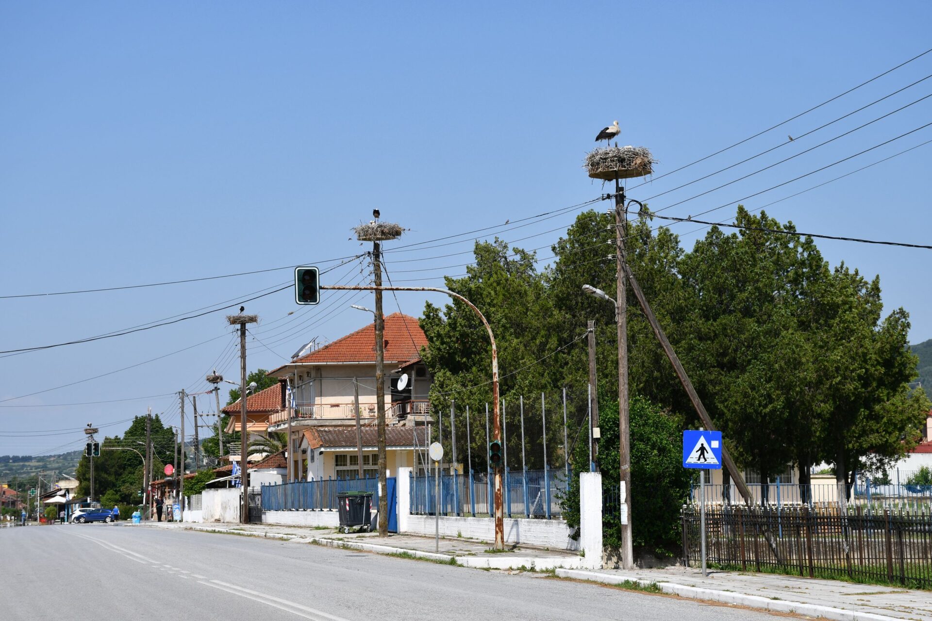Σε υποδέχονται οι πελαργοί (Ciconia ciconia ciconia) με τα μικρά τους μέσα στις φωλιές που βρίσκονται πάνω σε όλες τις κολώνες του κεντρικού δρόμου του χωριού.