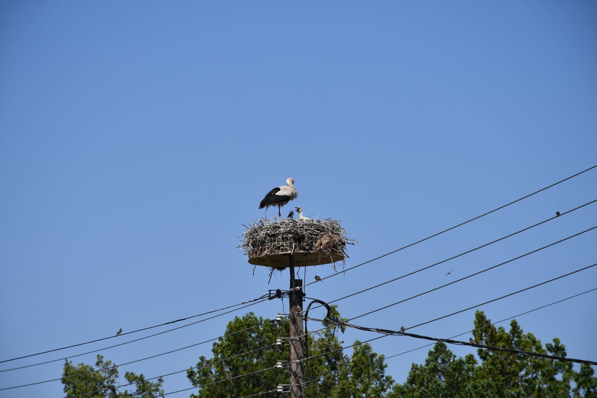 Κάθε στύλος κι ένας πελαργός με τα μικρά του, στη Νυμφόπετρα