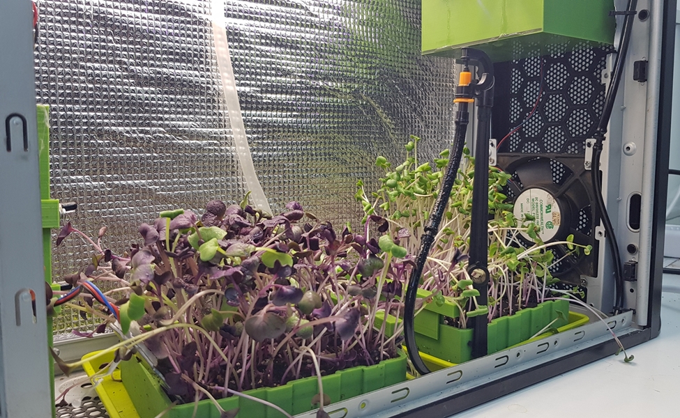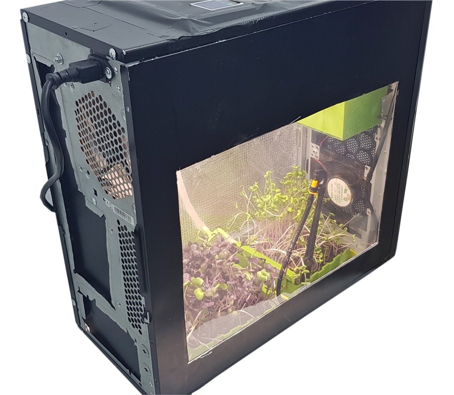 Τα φυτά μεγαλώνουν με τη βοήθεια ειδικού φωτός, με βάση το μπλε και το κόκκινο χρώμα, που βοηθούν το φυτό να αναπτυχθεί και να βλαστήσει. Παράλληλα, ειδικοί αισθητήρες ειδοποιούν αν υπάρχει αυξημένη υγρασία, ώστε να ενεργοποιηθεί το ανεμιστηράκι του παλιού υπολογιστή με την ενέργεια που παίρνει από το τροφοδοτικό του. Η καλλιέργεια γίνεται με τη χρήση του Διαδικτύου των Πραγμάτων (Internet of Things) και της αποστολής των δεδομένων της καλλιέργειας σε cloud, σε μια εφαρμογή που αποτελεί την αιχμή του δόρατος της έξυπνης γεωργίας.