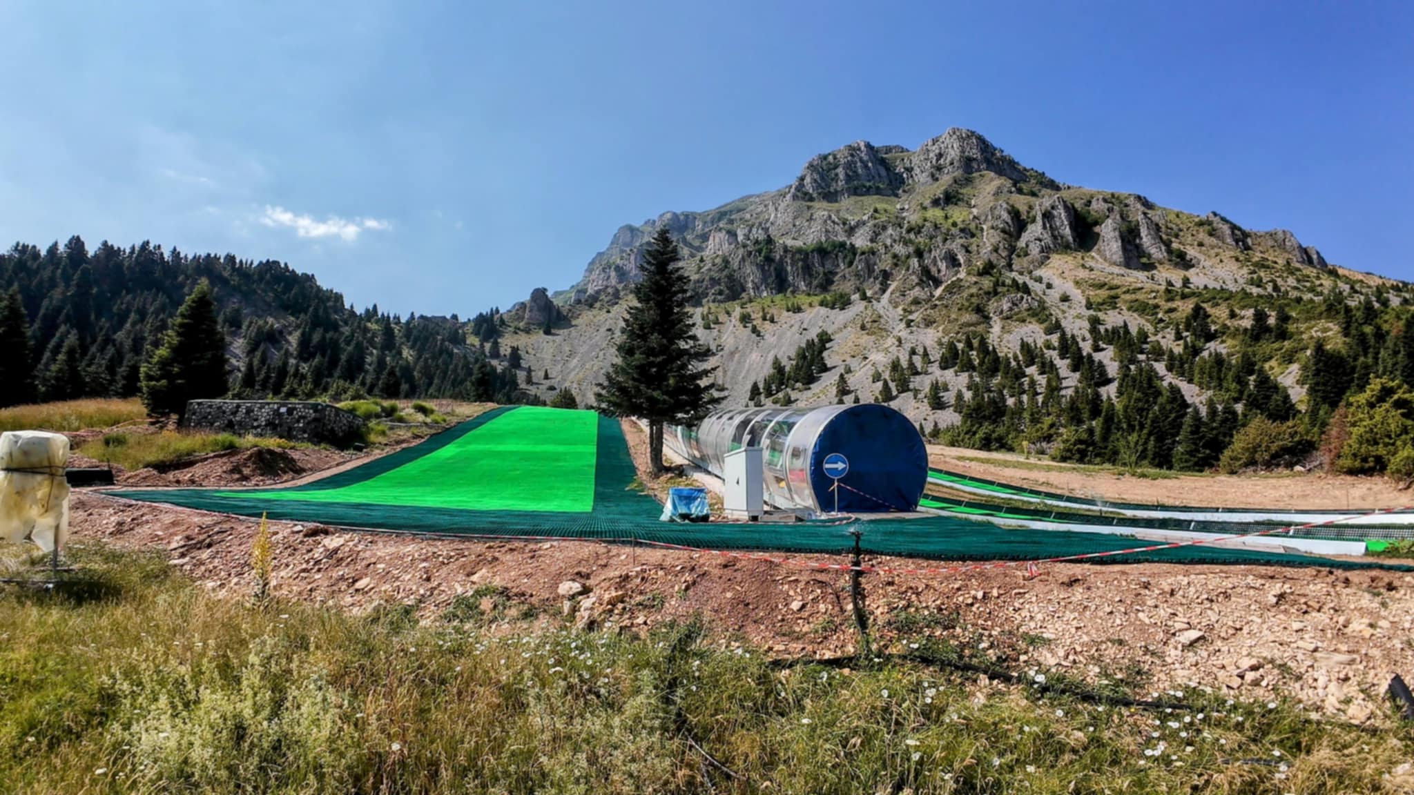 Όταν βρίσκεται σε πλήρη λειτουργία, ο τάπητας θα καλύπτεται και με χιόνι, το οποίο όμως δεν θα είναι φυσικό. Η κλιματική αλλαγή έχει περιορίσει κατά πολύ τις χιονοπτώσεις, οπότε το χιόνι θα παράγεται τεχνητά από δύο κανόνια τεχνητής χιόνωσης, τα οποία βρίσκονται ήδη στο σημείο.