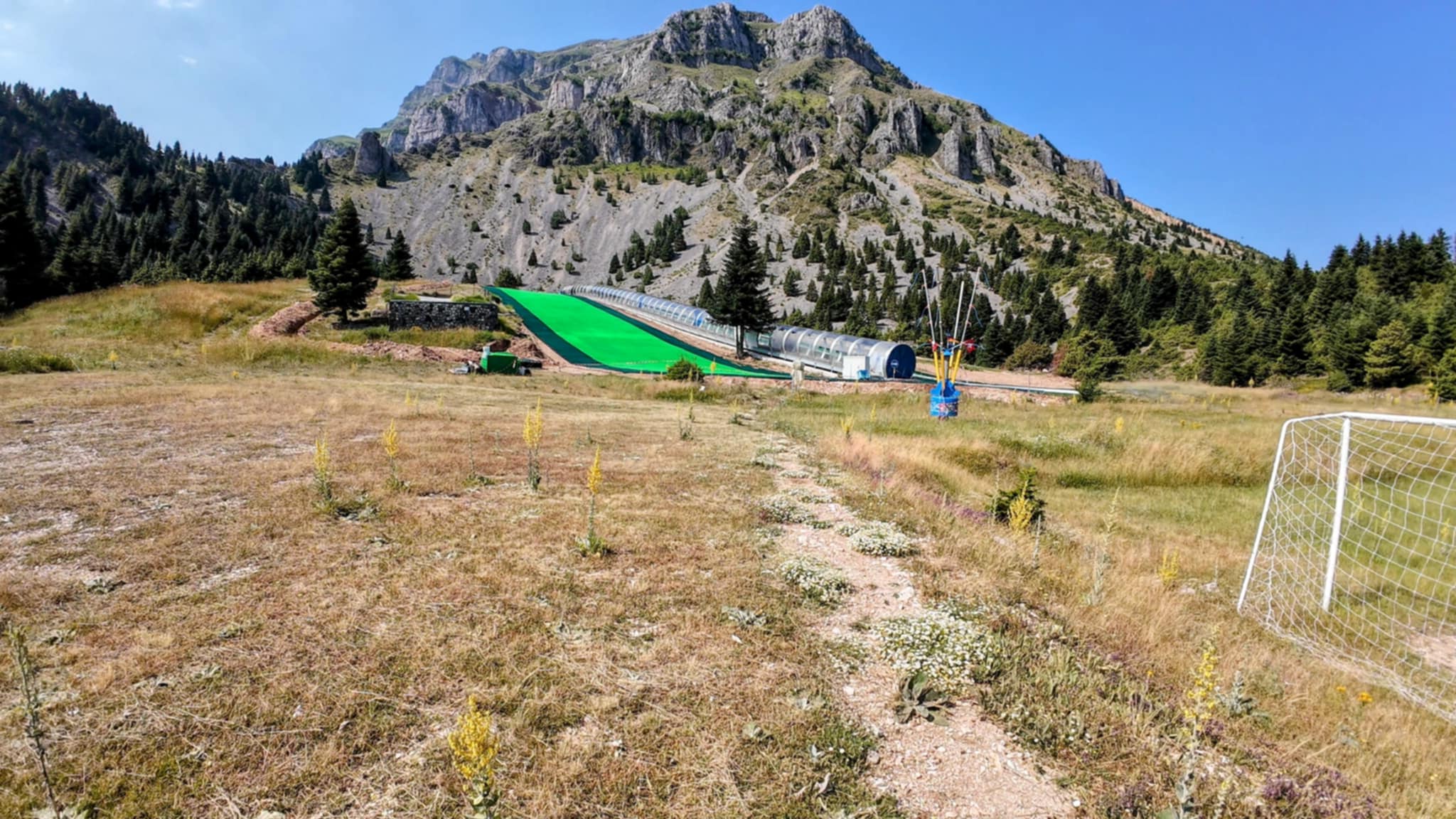 Του μεταφέρουμε την αρνητική εικόνα που προκαλεί η εικόνα των εγκαταστάσεων σε επισκέπτες και απαντά: «Αυτόν τον τάπητα τον είδα πρώτη φορά σε σχολές εκμάθησης της Ιταλίας. Η εικόνα που βλέπει ο κόσμος τώρα είναι προσωρινή. Έχουμε σπείρει γρασίδι το οποίο θα αναπτυχθεί και θα καλύψει τον πλαστικό τάπητα, ώστε να αφομοιωθεί στο φυσικό τοπίο».