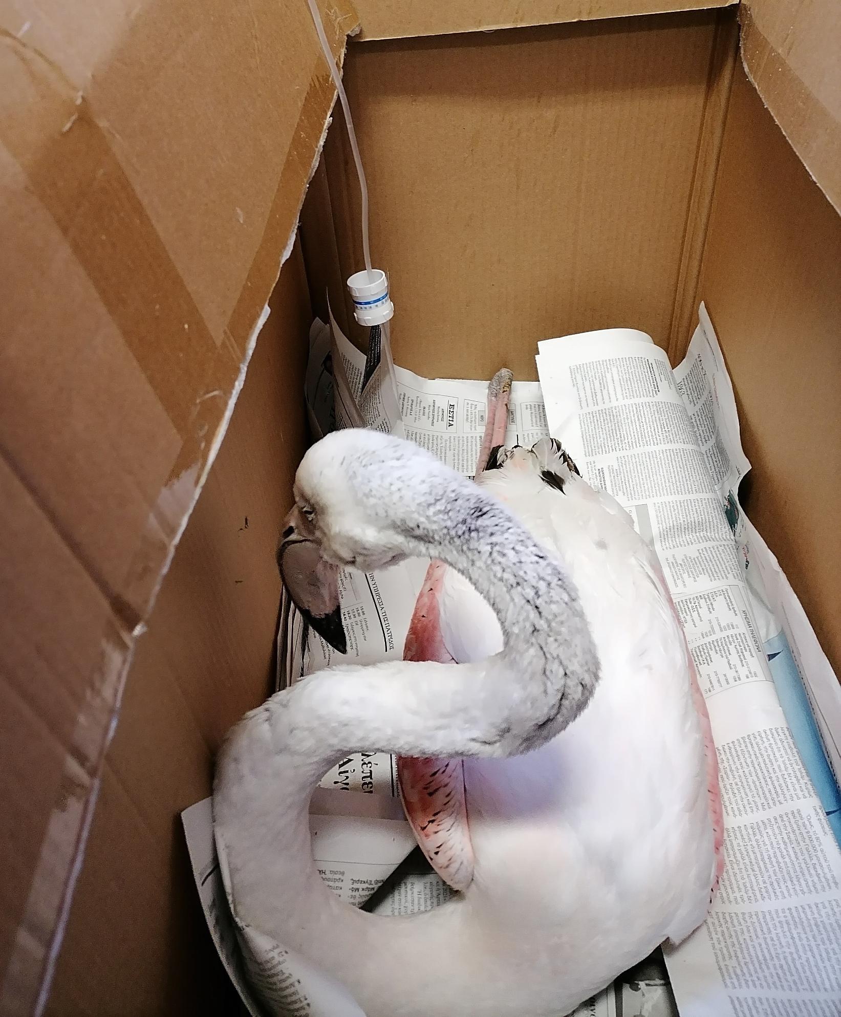 Μάλιστα, το ένα από τα φλαμίνγκο που κινδυνεύει, διαπιστώθηκε ότι έχει καταπιεί δεκάδες σκάγια κι αγωνίζεται να επιβιώσει.