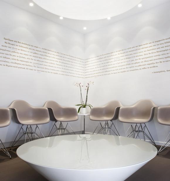 Ο ρόλος μας είναι να διαμορφώνουμε χώρους που να είναι εξίσου άρτιοι λειτουργικά και αισθητικά για όλους τους χρήστες του χώρου. Στη συγκεκριμένη περίπτωση, οι εργονομικές ανάγκες των εμβρυολόγων, οι οποίοι εργάζονται για ώρες σε ένα χώρο χωρίς φυσικό φωτισμό λόγω των αυστηρών εργαστηριακών προδιαγραφών, είναι εξίσου σημαντικές με την ανάγκη ψυχολογικής υποστήριξης του ζευγαριού που επισκέπτεται τη Μονάδα για να αντιμετωπίσει κάποιο πρόβλημα υπογονιμότητας. Προσεγγίσαμε έτσι το έργο εντελώς διερευνητικά, χωρίς να θεωρούμε καμία από τις υφιστάμενες μεθοδολογίες ως δεδομένες καθώς αρκετές φορές ο λόγος ύπαρξής τους είναι η συνήθεια. Γι’αυτό το λόγο ο χώρος της ανάνηψης είναι σχεδιασμένος με τέτοιο τρόπο ώστε το περιβάλλον να βοηθά την ψυχολογία της γυναίκας πριν και μετά την επέμβαση, ώστε να επιταχύνει το χρόνο ανάρρωσης της. Και αντίστοιχα το δωμάτιο συλλογής σπέρματος είναι ένας χώρος χαλάρωσης με ιδιαίτερη προσοχή στη διατήρηση της αξιοπρέπειας του χρήστη, μία πολύ διαφορετική εμπειρία συγκριτικά με τις αποστειρωμένες αισθητικά εναλλακτικές. Οι χώροι στους οποίους κινούνται τα επισκεπτόμενα ζευγάρια είναι σχεδιασμένοι με υψηλής τεχνολογίας υλικά (αντιμικροβιακές μεμβράνες, ακρυλικές επιφάνειες, ειδικές ρητίνες), καθρεφτίζοντας έτσι την τεχνογνωσία και την εμπειρία του προσωπικού της κλινικής, ενώ σε συνδυασμό με τις συνεχόμενες ρευστές γραμμές, χωρίς σκληρές γωνίες, εμποδίζουν την ανάπτυξη μικροβίων και άλλων παθογόνων παραγόντων».