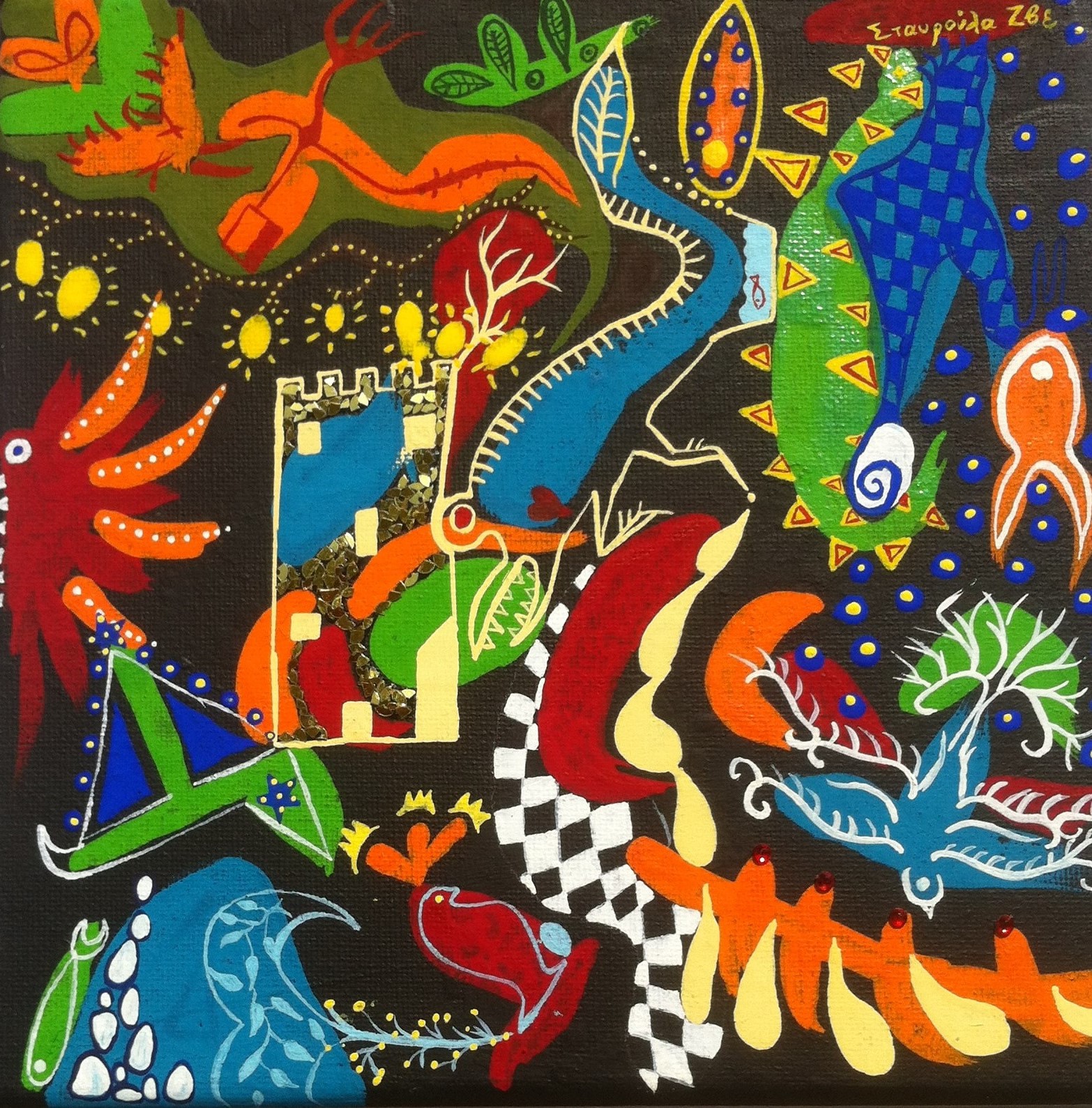 Η ζωγραφική της Σταυρούλας Ζβε μας κατευθύνει σε μία τέχνη αυθόρμητη με τα χρώματα που εναλλάσσονται ονειρικά και ποιητικά γεμάτα φαντασία και μυστικισμό.