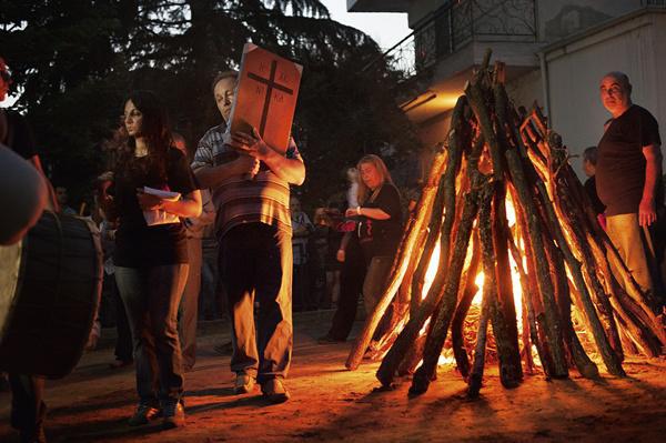 Το ότι μπορεί η όλη διαδικασία να αγγίζει σε στιγμές την τουριστική ατραξιόν σε ενοχλεί; Βέβαια και αυτό είχε συμβεί κάποτε πριν κάποια χρόνια, το 1960 -1970, στον Λαγκαδά πριν πάω εγώ, που πηγαίνω τα τελευταία 25 χρόνια. Εκεί είχε μετατραπεί σε τουριστική ατραξιόν το πανηγύρι. Βγαίναν στην κεντρική πλατεία, άναβε η φωτιά, υπήρχε ένα σιδερένιο κιγκλίδωμα που θύμιζε τσίρκο Μεντράνο και κάποιοι πλήρωναν εισιτήριο για να δουν το θέαμα. Αυτό για μένα είναι φοβερά ενοχλητικό έως και ανασταλτικό θα έλεγα. Τα τελευταία χρόνια δεν συμβαίνει, είναι ανοιχτό βέβαια, όσοι πιστοί προσέλθετε, αλλά ως εκεί. O Λαγκαδάς πάντα προσέλκυε πολύ κόσμο γιατί είναι προάστιο της Θεσσαλονίκης και μπορείς εύκολα να πας.