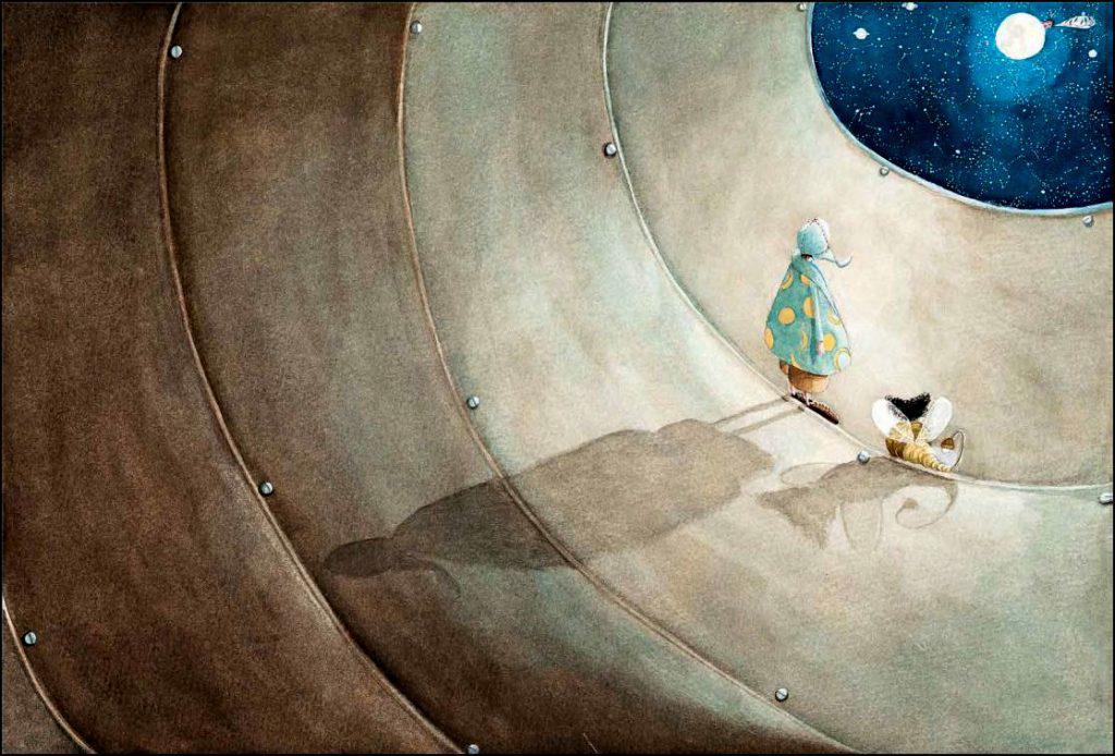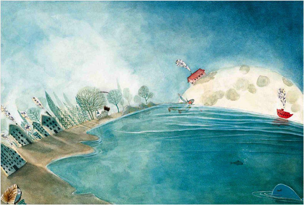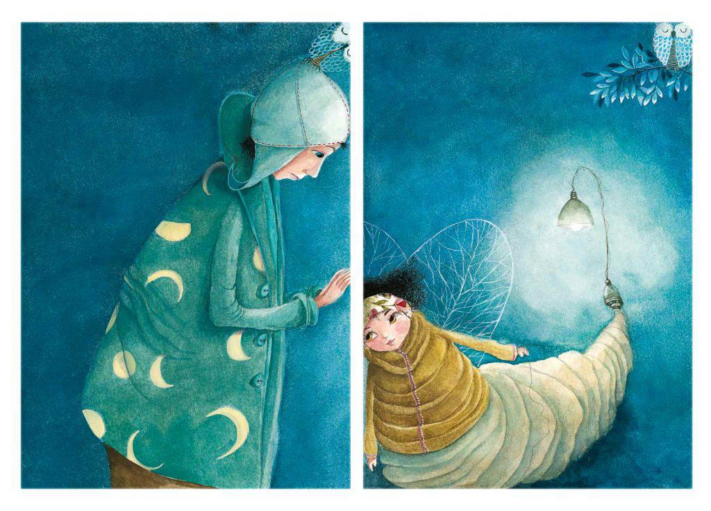 Η συνομιλία της πυγολαμπίδας με το φεγγαράκι ενέπνευσαν την εικονογράφο για το βιβλίο αυτό. «Ο θαυμασμός και η έκπληξη για την καινούρια γνωριμία. Έτσι έντυσα τον καθ’ έναν τους με ρούχα μοναδικά γιατί κι αυτοί είναι μοναδικοί σαν πρωταγωνιστές αυτής της ιστορίας! Όλες οι εικόνες από το καινούριο βιβλίο είναι αγαπημένες μου, λίγο παραπάνω αγαπάω την ζωγραφιά που οι ήρωες κάθονται στην καμπύλη της πόλης και η φάλαινα με τον σκούφο της κοιμάται στα νερά της θάλασσας ενώ το σπίτι του μικρού φεγγαριού κρέμεται ανάποδα πάνω απ’ τα κεφάλια τους».