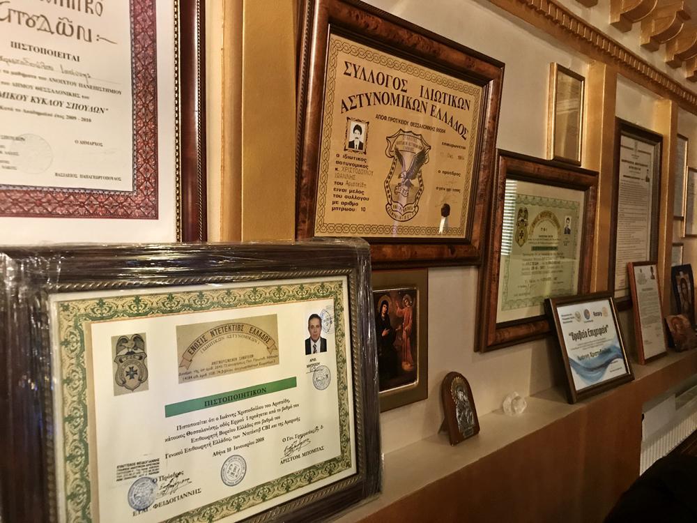Το σκέφτηκα και αυτό, είχε το 1980 περίπου 2.200 βιοτέχνες στην αγορά, ήταν στην πλήρη άνθησή του το επάγγελμα, αλλά εμένα δε με ενδιέφερε, δεν το κυνήγησα. Πήγαινα και ερχόμουν από χώρα σε χώρα, για να μπορώ να μάθω και να δουλέψω στον τομέα της ιδιωτικής έρευνας. Ήταν κάτι που με ενδιέφερε, με συγκινούσε απίστευτα. Και ακόμα με συγκινεί. Η κάθε δουλειά για εμένα είναι σαν να είναι η πρώτη μου δουλειά. Όταν γύρισα στη Θεσσαλονίκη το 1981, έκανα ένα μικρό γραφείο εδώ στην Ερμού 1, με έναρξη στην εφορία, άδειες, και από τότε δεν έχω αλλάξει δουλειά. Συνεχώς ενημερώνομαι, συνεχώς εκπαιδεύομαι πάνω στον τομέα μου, πάνω σε μηχανήματα, σε ό,τι έχει να κάνει με την δουλειά μου.