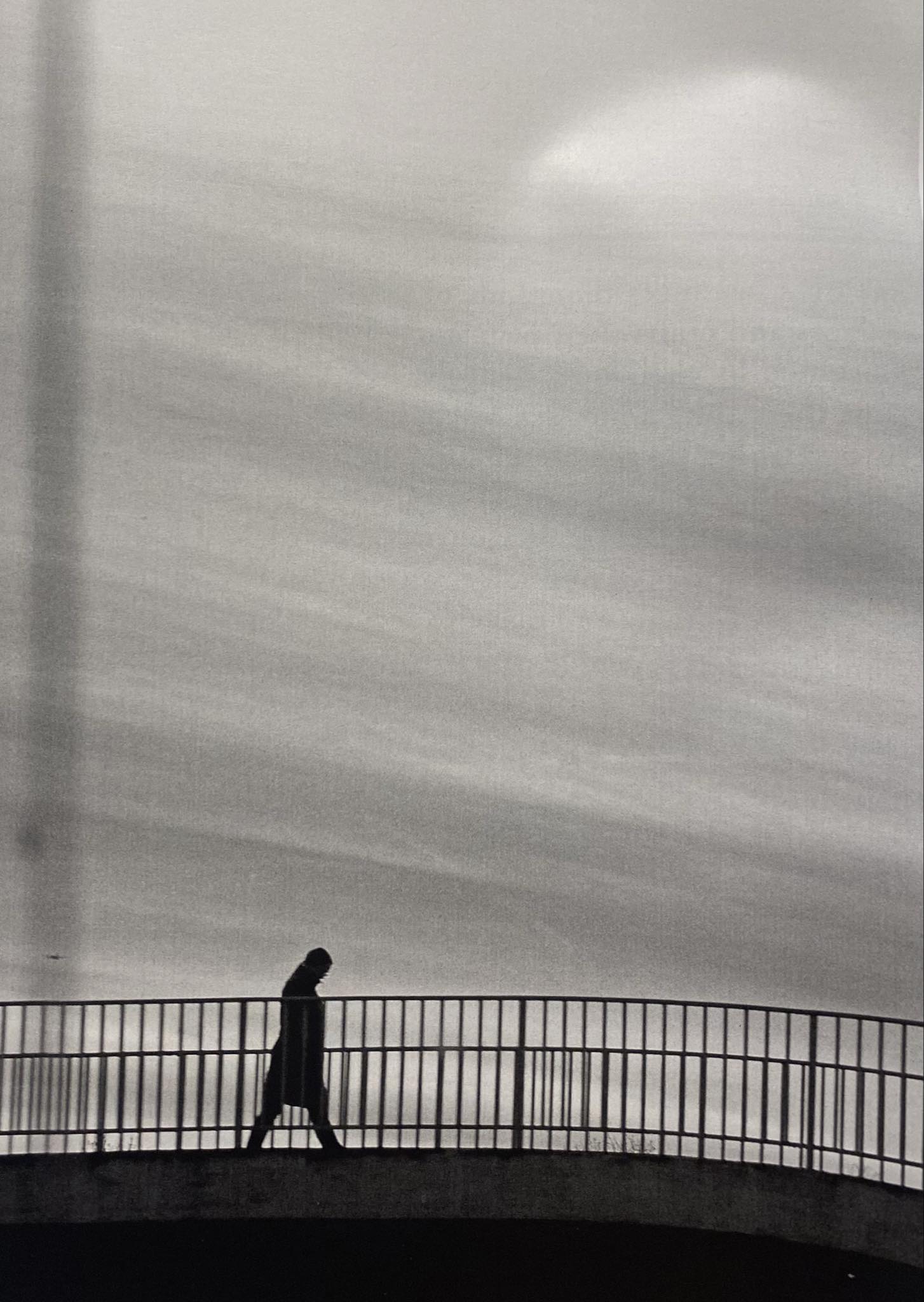 Δεν μπορώ να ξεχωρίσω απόλυτα κάποια γιατί όλες είναι μέρος μου. Σίγουρα η φωτογραφία του εξωφύλλου είναι μια συγκινητική στιγμή. Ήμουν σε ένα πούλμαν και ταξίδευα οπότε καθώς προχωρούσαμε, βλέπω μια γέφυρα στο βάθος και κάποιον να στέκεται πάνω της. Και εκείνη τη στιγμή, έβγαλα την κάμερα από τη τσάντα, πήγα μπροστά στο λεωφορείο και την τράβηξα. Ήταν μια αποφασιστική στιγμή. Ένα δευτερόλεπτο μετά δεν θα ήταν. Το βασικό με την φωτογραφία είναι να έχεις τα μάτια σου ανοιχτά.