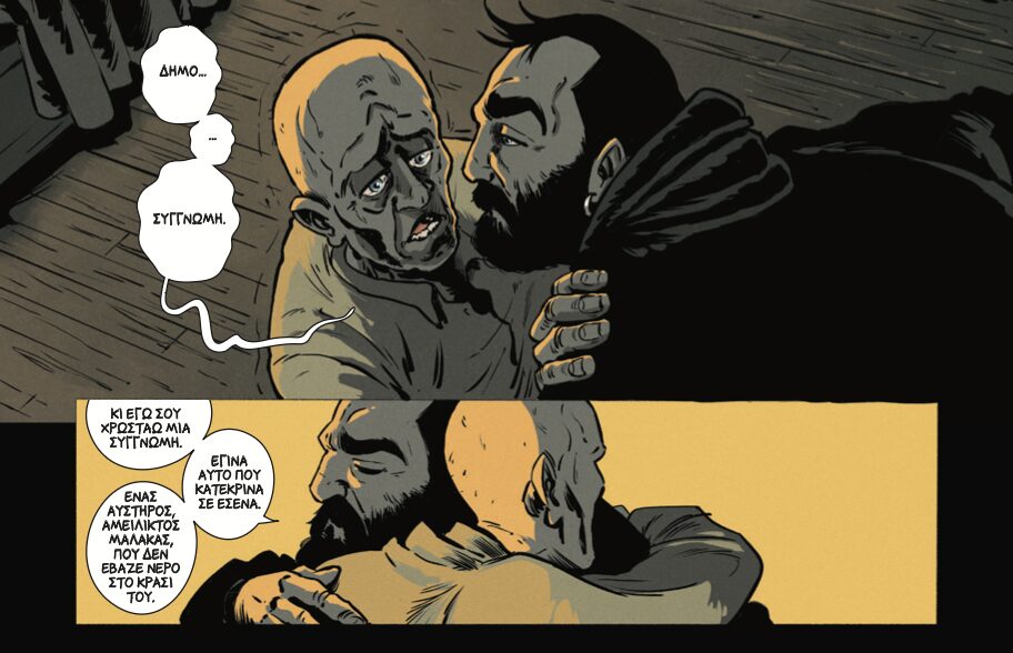 Όπως το αντιλαμβάνομαι εγώ για να δοθεί μια δεύτερη ευκαιρία θα πρέπει να υπάρξει ειλικρινή αυτοκριτική και αναγνώριση τους λάθους και πάνω σε αυτό να γίνει δουλειά για να δοθεί μια δεύτερη ευκαιρία. Υπάρχουν βέβαια και πράξεις που δεν συγχωρούνται. Γενικότερα πιστεύω πως οι άνθρωποι πρέπει να δουλεύουμε πολύ με τους εαυτούς μας όσο δύσκολο και επίπονο και να είναι ώστε να μπορέσουμε μετά να βρούμε και τις σχέσεις μας με τους άλλους ανθρώπους. Είναι δύσκολες οι εποχές που ζούμε και επίπονες και αυτό έχει προεκτάσεις στις σχέσεις των ανθρώπων για να ξανακάνω τη σύνδεση με το κόμικς.