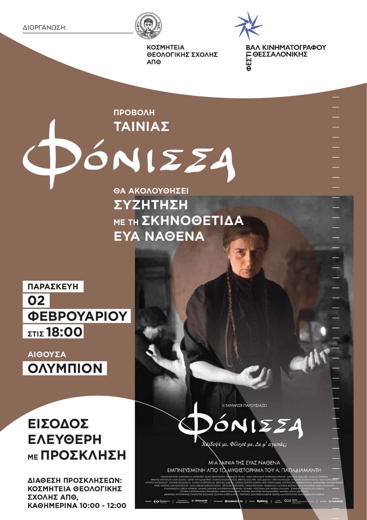 Η συνέντευξη έγινε με αφορμή την προβολή της ταινίας “Φόνισσα” στη Θεσσαλονίκη, την Παρασκευή 2 Φεβρουαρίου, στο Ολύμπιον, την οποία ακολούθησε συζήτηση με την ίδια τη σκηνοθέτιδα.