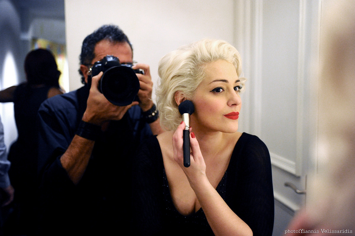 “Πριν από έξι χρόνια είχα στο μυαλό το concept του drama clawn, είχα καλέσει μία εξαιρετική make-up artist, της έδειξα τι θέλω να μου κάνει αλλά μου έκανε κάτι άλλο. Κάποια στιγμή με πιάνει η Αννίτα και μου λέει “ρε ‘συ Γιάννη μπορείς να την διώξεις να βαφτώ μόνη μου; Δεν μου αρέσει έτσι όπως με έκανε. Και όντως πλήρωσα την κοπέλα έφυγε, η Αννίτα βάφτηκε μόνη της και είχαμε ένα μοναδικό πορτρέτο.