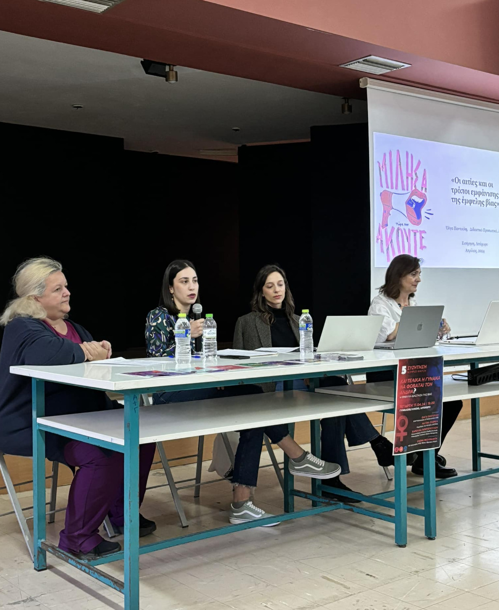 Ανησυχώντας για τα κλιμακούμενα φαινόμενα έμφυλης βίας καταπιαστήκαμε με το ζήτημα προκαλώντας συζήτηση και προβληματισμό για τις αιτίες του, ενώ ταυτόχρονα ενημερώσαμε το κοινό για τις υπαρκτές ή ανύπαρκτες δομές υποστήριξης κοντά στον τόπο μας.