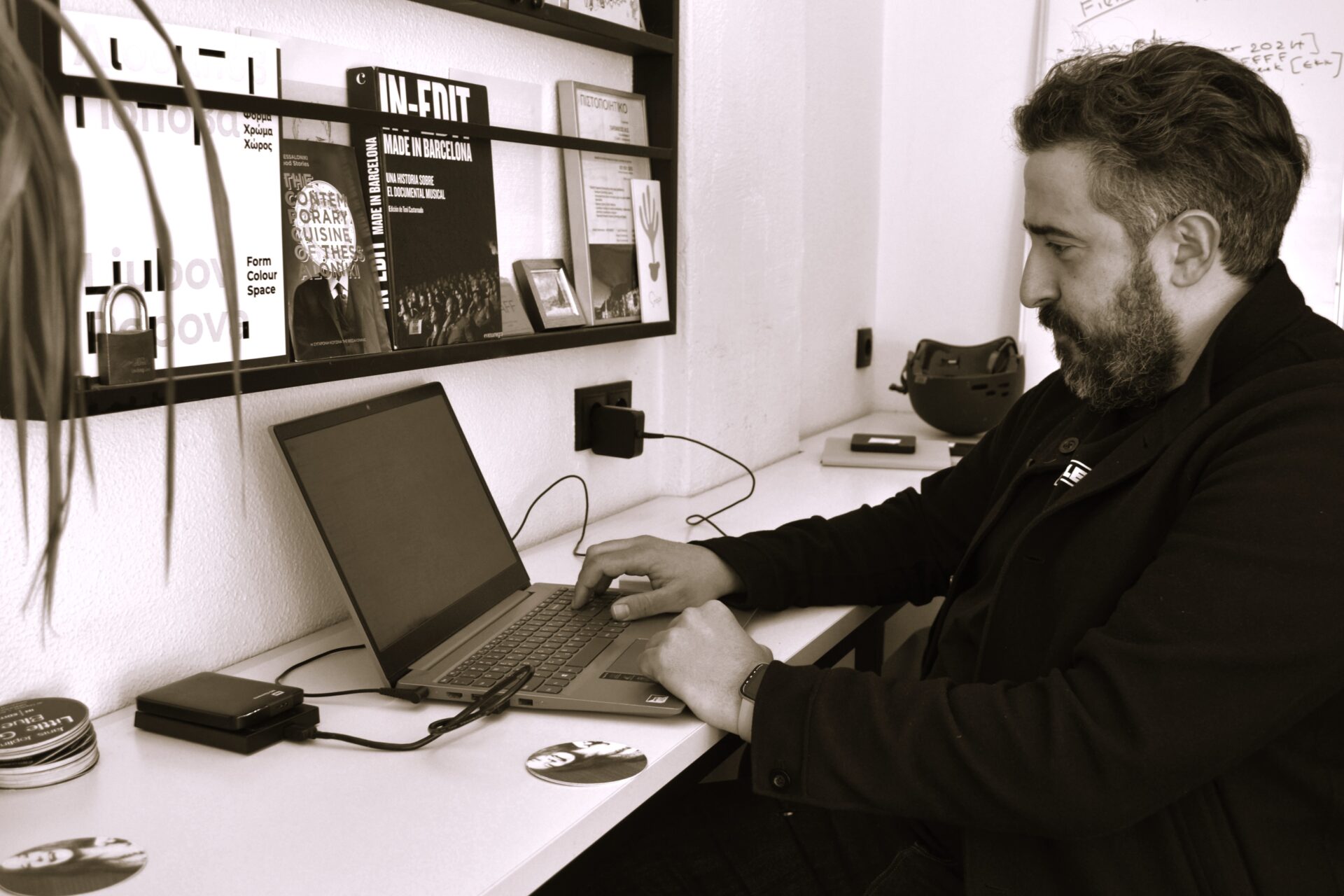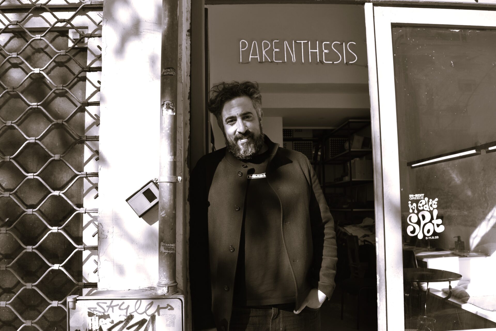 Αυτή τη στιγμή στο γραφειο μας στην Parenthesis. στην Ολύμπου κοντά στη Ρωμαϊκή Αγορά, ακριβώς απέναντι από το Στόρι, το καφέ μπαρ που ανοίξαμε με δύο φίλους. Είναι αλήθεια ότι τις περιόδους όπως αυτή των διοργανώσεων, λειτουργεί σαν δεύτερη έδρα. Στα δύσκολα περνάμε το δρόμο απέναντι, ανεβάζουμε λίγο την ένταση της μουσικής, φτιάχνουμε ένα κοκτέιλ, κάνουμε μια λίστα με τις εκκρεμότητες μαζί με τις ανάσες, ξεφυσάμε και επιστρέφουμε στο γραφείο.