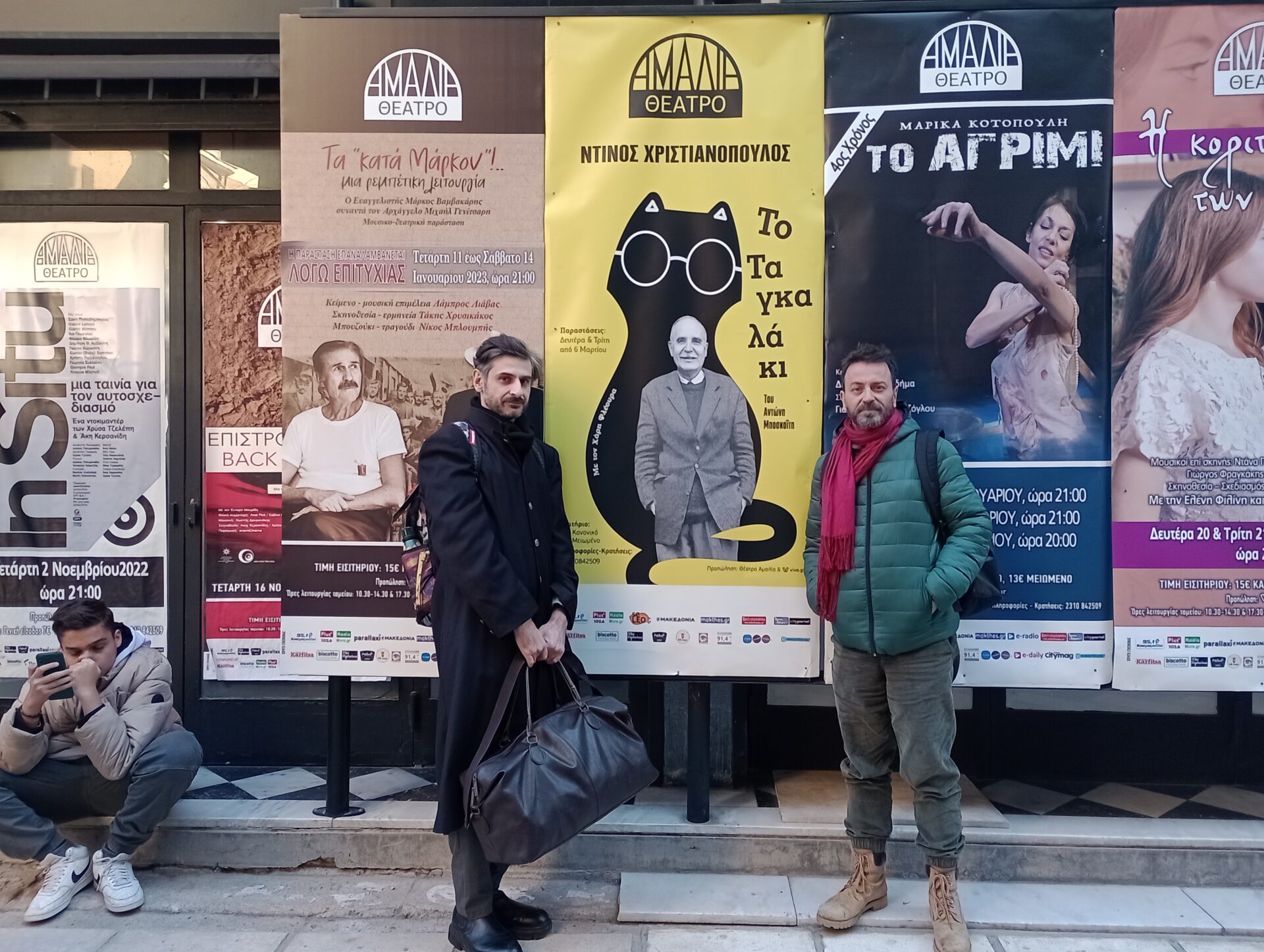 Α.Μ.: Με τα παιδιά από το «Πόλις Πολιτισμού» έχουμε μια άριστη σχέση, συνεργαζόμαστε άψογα τα τελευταία χρόνια με παραστάσεις, με προβολές των ταινιών μου, με βιβλιοπαρουσιάσεις, με διάφορες εκδηλώσεις. Το θέατρο «Αμαλία» είναι ένα πολύ ωραίο θέατρο, ένα κλασικό στέκι που στέγαζε την παλιά Πειραματική Σκηνή της Θεσσαλονίκης και έχει ακόμη μια υπέροχη αύρα. Κυρίως, όμως, είναι η καλή σχέση μας με τον Θανάση και τη Βέτα. Έχουμε κάνει τόσες περιοδείες πια, που συνδεθήκαμε με φιλία. Οπότε, όταν μιλάμε για μια προσωπικότητα της πόλης σαν τον Χριστιανόπουλο, τι ποιο αναμενόμενο από το να γινόταν εδώ η παραγωγή και να ξεκινούσαμε από τη Θεσσαλονίκη; Τα παιδιά σήκωσαν το βάρος της παραγωγής χωρίς – εννοείται – να έχουμε κανέναν φορέα, ίδρυμα, οργανισμό κλπ. από πίσω μας. Βρίσκω πολύ καλό που ξεκινούν πλέον παραγωγές να γεννιούνται στη Θεσσαλονίκη και να κατεβαίνουν μετά στην Αθήνα, όχι μόνο το αντίθετο.