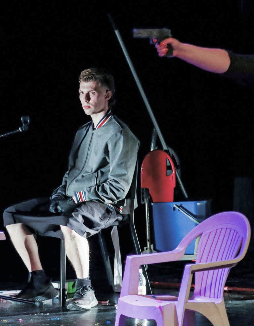 Η πρώτη μου επαγγελματική δουλειά στο θέατρο ήρθε αμέσως μετά τη δραματική. Το ίδιο καλοκαίρι. Ήμουν πολύ τυχερός. Μέσα στη σχολή είχα τη χαρά να συνεργαστώ με τον σκηνοθέτη Θάνο Νίκα και, μετά τις διπλωματικές, ο ίδιος επέλεξε κάποιους ηθοποιούς του τμήματος για τη δεύτερη σαιζόν της παράστασης «Hum@nitarium» που αποτέλεσε, ουσιαστικά, μία προσομοίωση reality show όπου η αξία του κάθε διαγωνιζόμενου κρινόταν με βάση το προφίλ του στα social media. Εκεί να δεις ψάξιμο. Εκεί να δεις έρευνα. Ήτανε μία από τις καλύτερες συνεργασίες που είχα στη μέχρι τώρα ζωή μου, μία πολύ ενδιαφέρουσα σύλληψη του ίδιου του Θάνου Νίκα και ένα πρωτότυπο κείμενο της Στέλλας Παπαδημητρίου. Σκέψου, οι θεατές, πριν μπουν στο θέατρο, είχανε κατεβάσει εφαρμογή στα κινητά τους και μπορούσαν να ψηφίσουν τον αγαπημένο τους παίκτη κατά τη διάρκεια της παράστασης. Ήταν όλο σαν όνειρο.