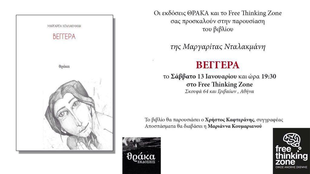 Η Μαργαρίτα Νταλακμάνη μας συστήνει το πρώτο της βιβλίο υπό τον τίτλο, «Βεγγέρα». Ένα βιβλίο για μια ολονύκτια σπαρακτική ομιλία με το θάνατο που ρέπει στο πρώτο φως της ημέρας, τη ζωή.