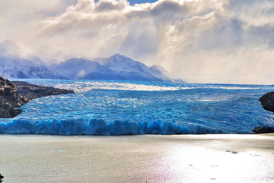 Η έκταση του παγετώνα αυτού είναι σχεδόν είκοσι χιλιόμετρα, και βρίσκεται μέσα στο μαγευτικό τοπίο των μυτερών κορυφών της Παταγονίας. Το μπροστινό μέρος του φαινομένου αυτού γεμάτο με μυτερά και ανομοιόμορφα γαλανόλευκα βραχάκια, καταλήγει στην λίμνη Grey. Εκεί κομματάκια πάγου πλέουν αθόρυβα, λες και έχει πέσει ένα κομμάτι ουρανού, απόδειξη για το πόσο γρήγορα οπισθοχωρεί αυτός ο πανέμορφος παγετώνας.